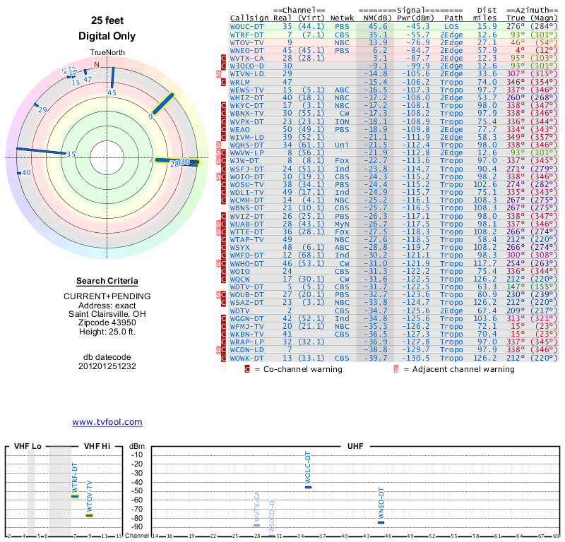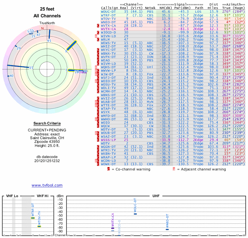 Here are the results for your location. The transmitter database was last updated on June 7, 2013. For more information about these plots and how to interpret them, please check out the Signal Analysis FAQ.