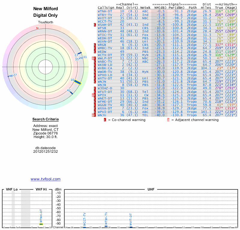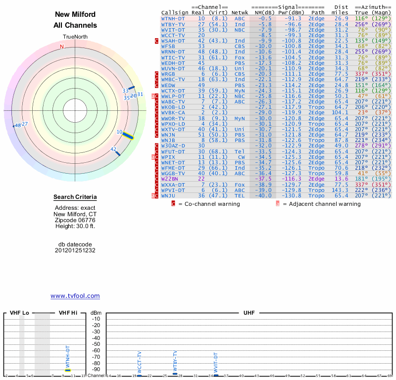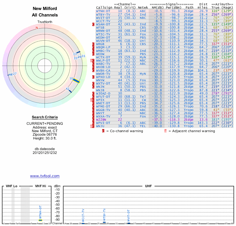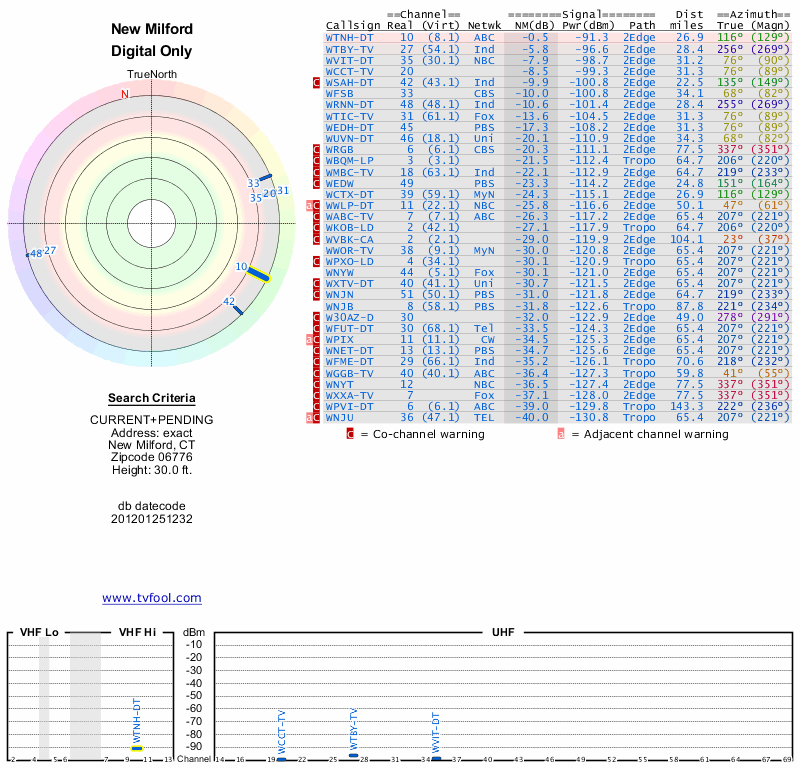 Here are the results for your location. The transmitter database was last updated on June 7, 2013. For more information about these plots and how to interpret them, please check out the Signal Analysis FAQ.