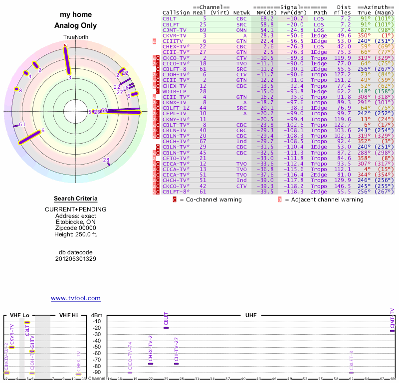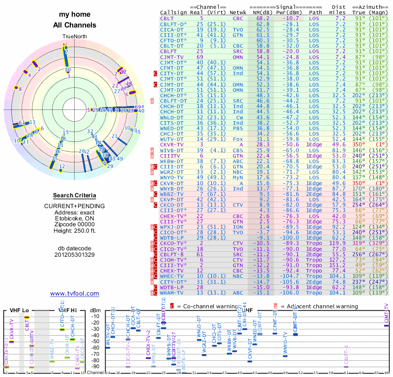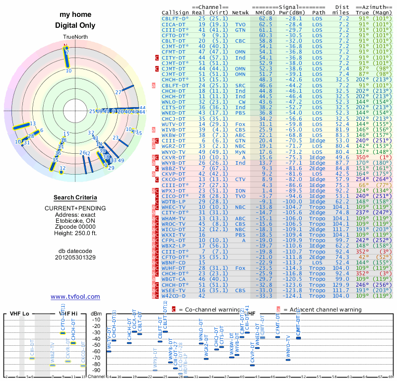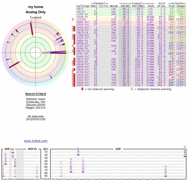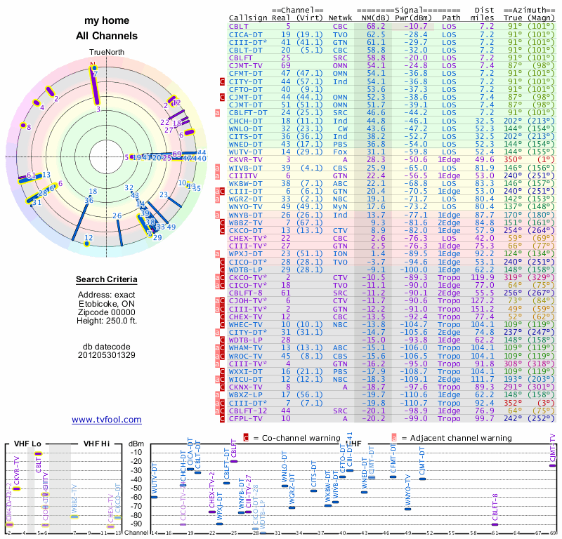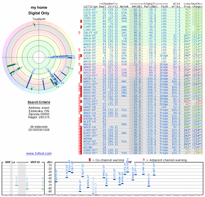 Here are the results for your location. The transmitter database was last updated on June 7, 2013. For more information about these plots and how to interpret them, please check out the Signal Analysis FAQ.