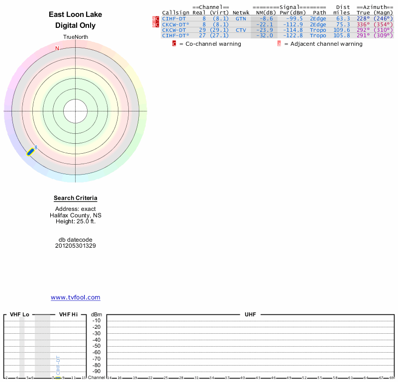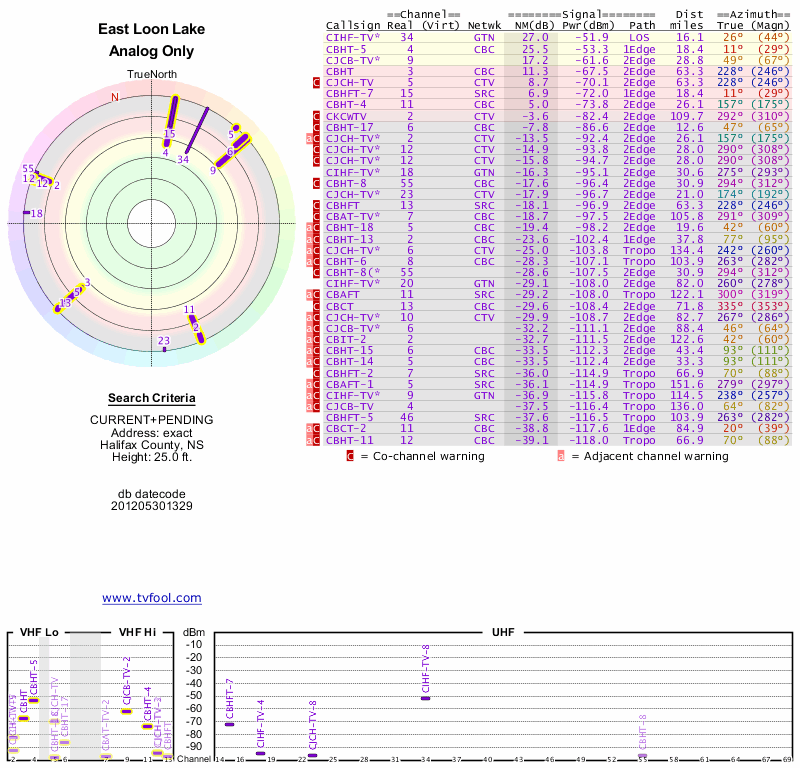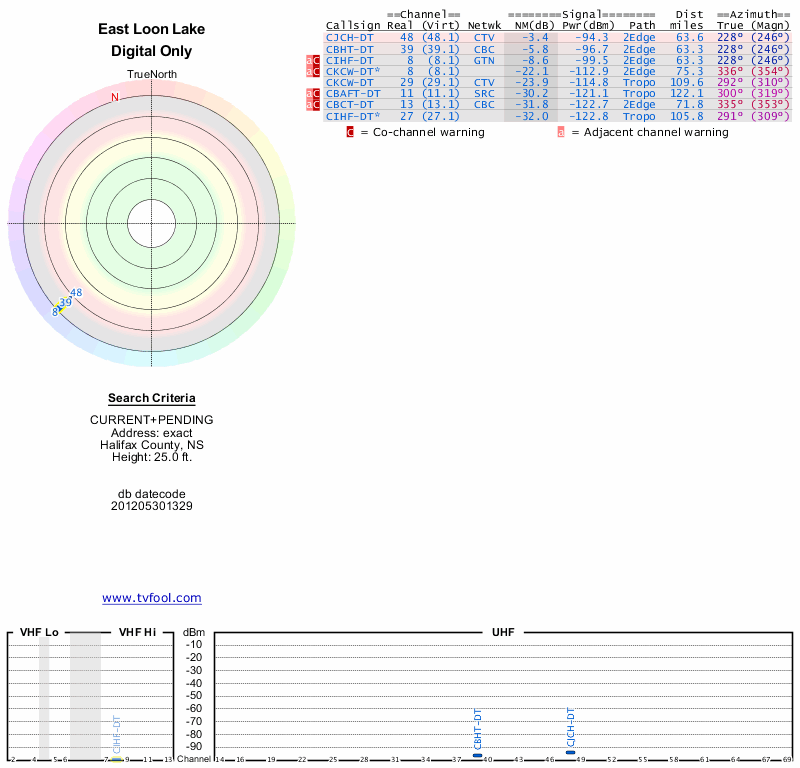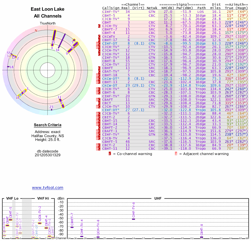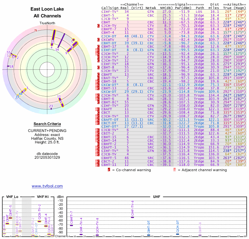 Here are the results for your location. The transmitter database was last updated on June 7, 2013. For more information about these plots and how to interpret them, please check out the Signal Analysis FAQ.
