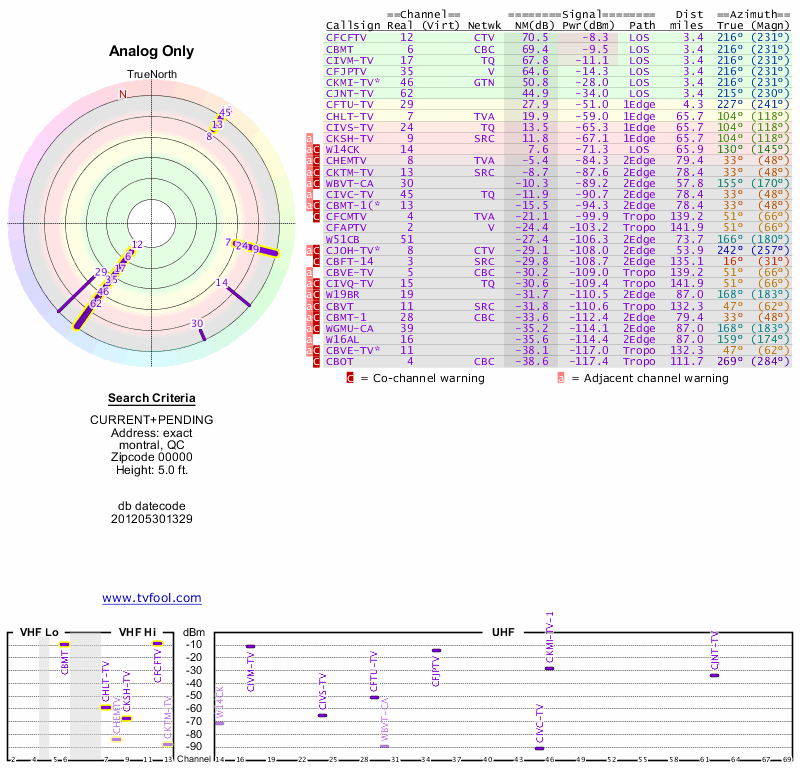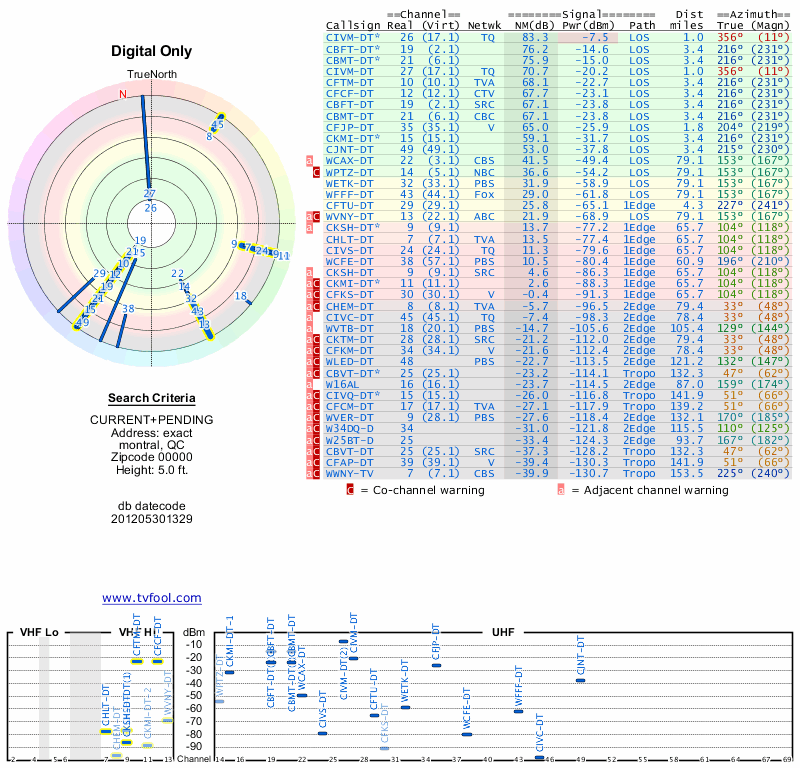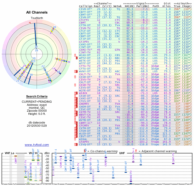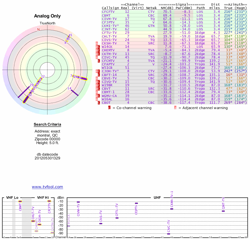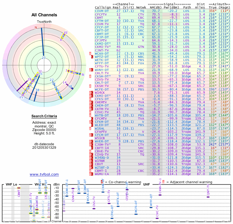 Here are the results for your location. The transmitter database was last updated on June 7, 2013. For more information about these plots and how to interpret them, please check out the Signal Analysis FAQ.