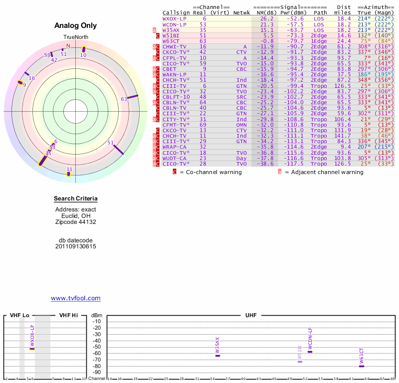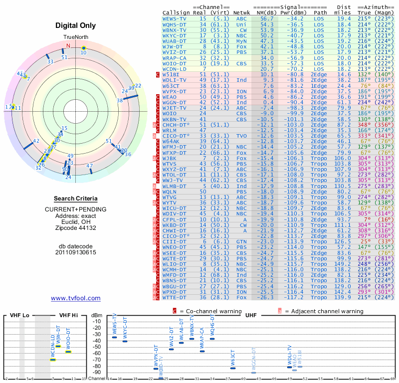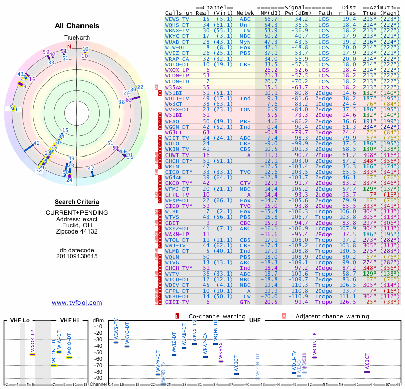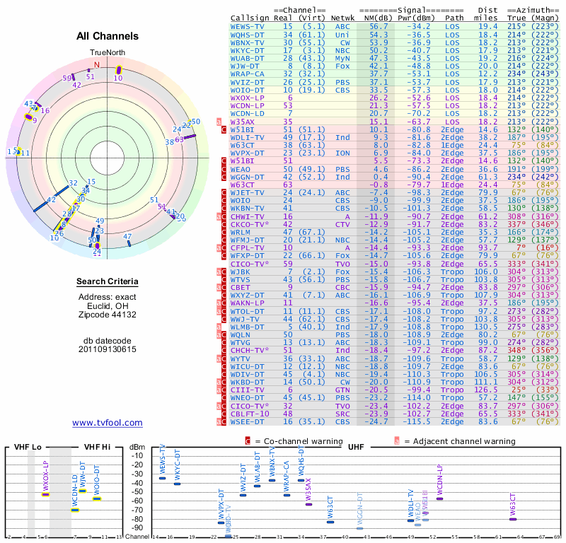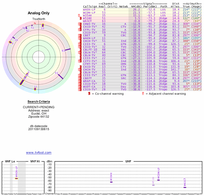 Here are the results for your location. The transmitter database was last updated on June 7, 2013. For more information about these plots and how to interpret them, please check out the Signal Analysis FAQ.