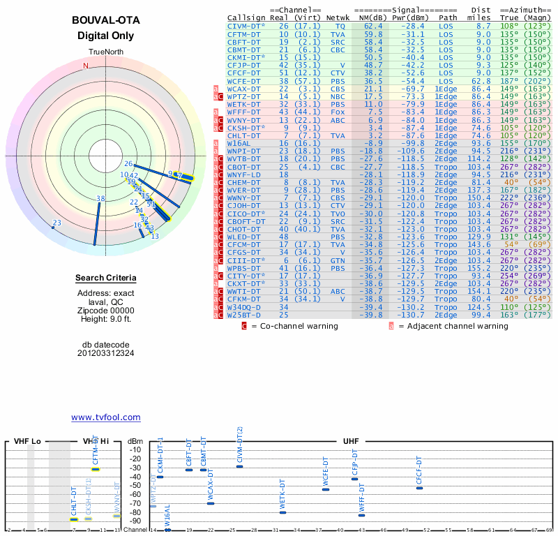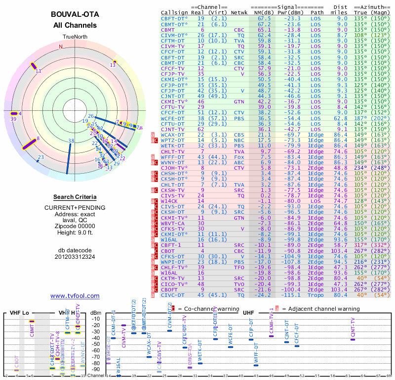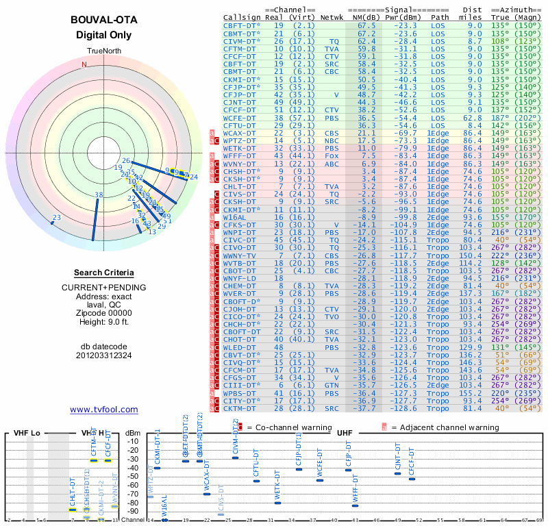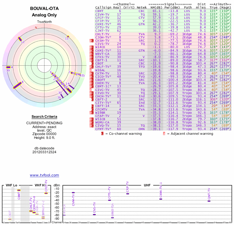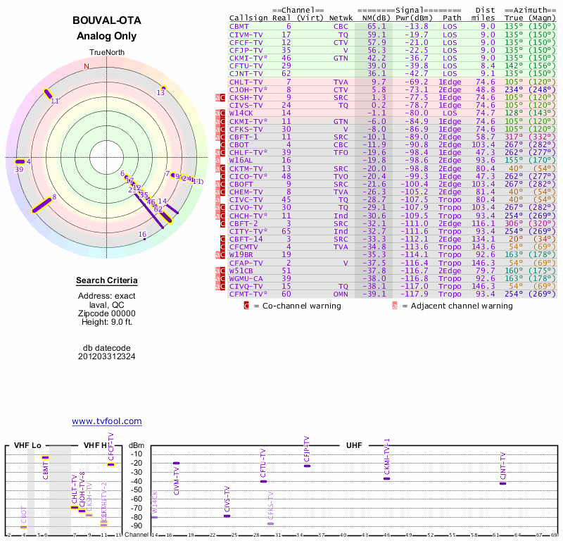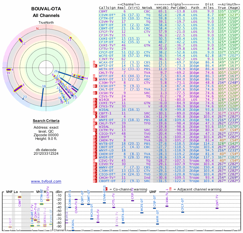 Here are the results for your location. The transmitter database was last updated on June 7, 2013. For more information about these plots and how to interpret them, please check out the Signal Analysis FAQ.