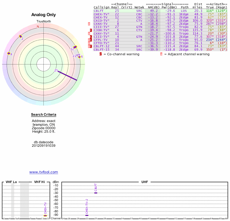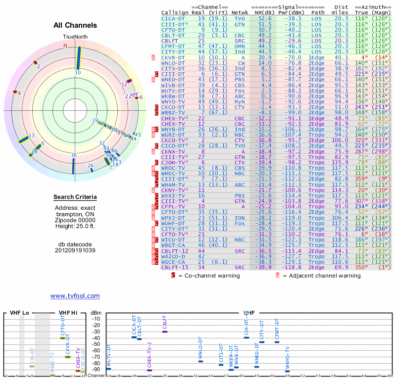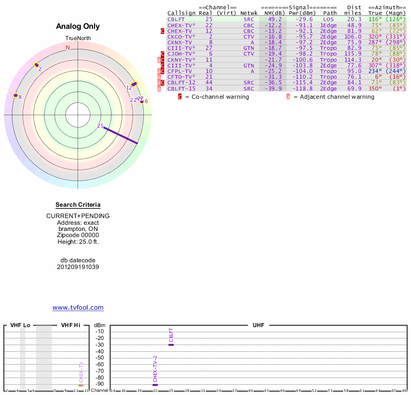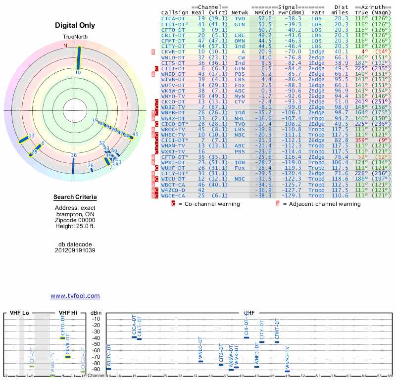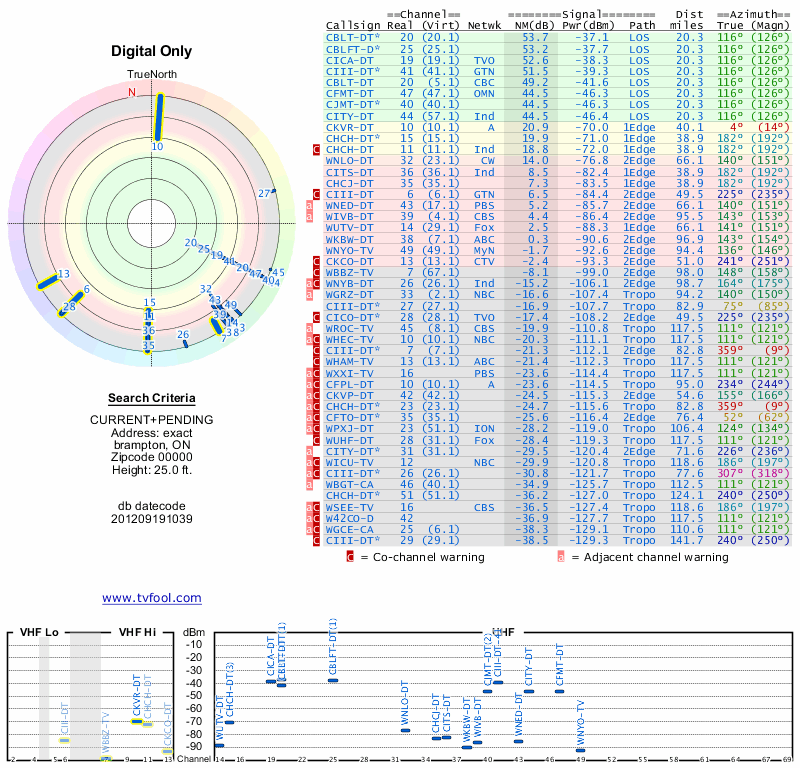 Here are the results for your location. The transmitter database was last updated on June 7, 2013. For more information about these plots and how to interpret them, please check out the Signal Analysis FAQ.