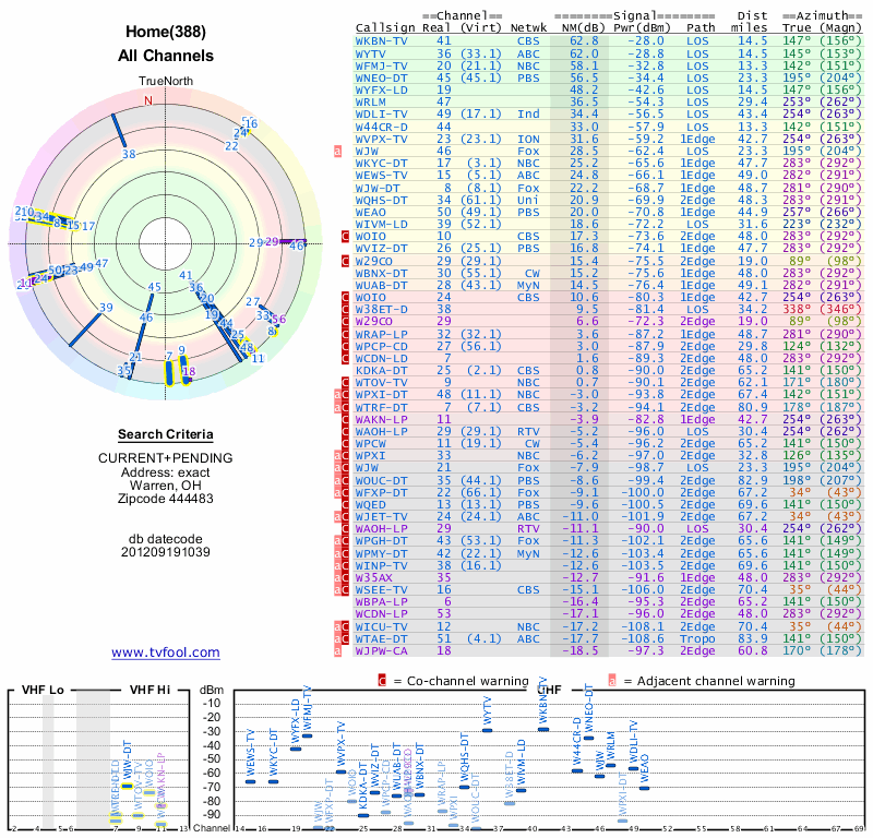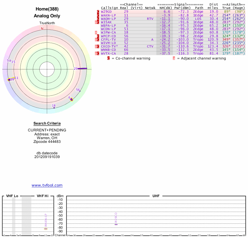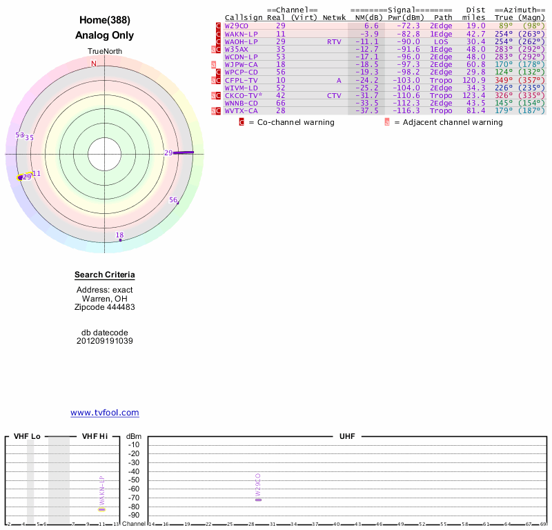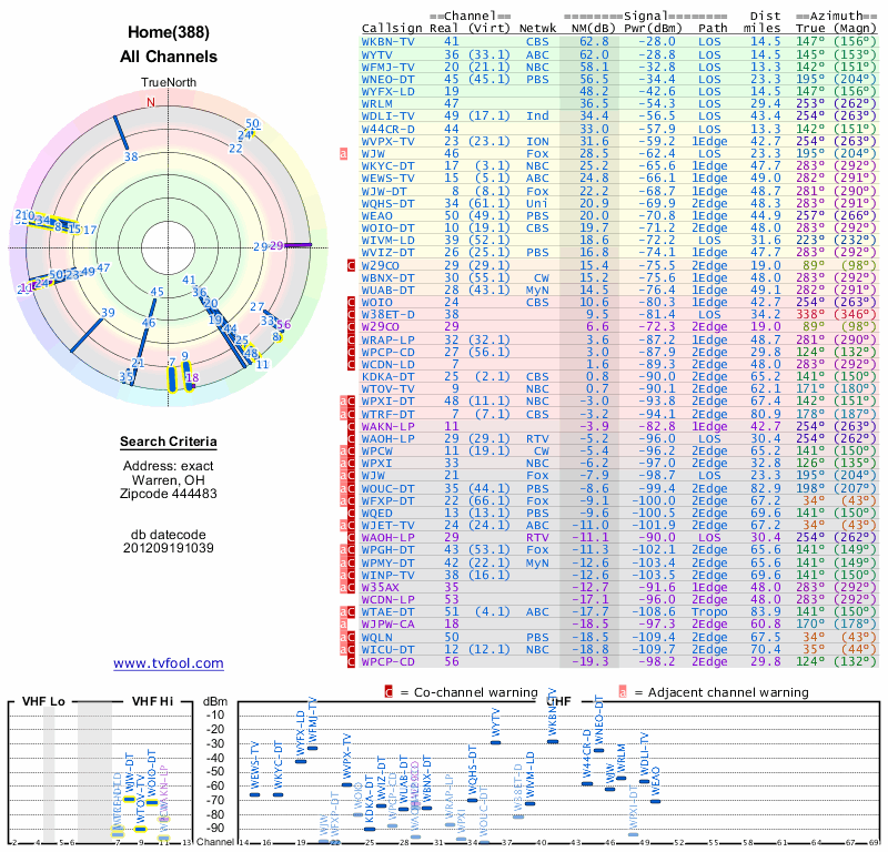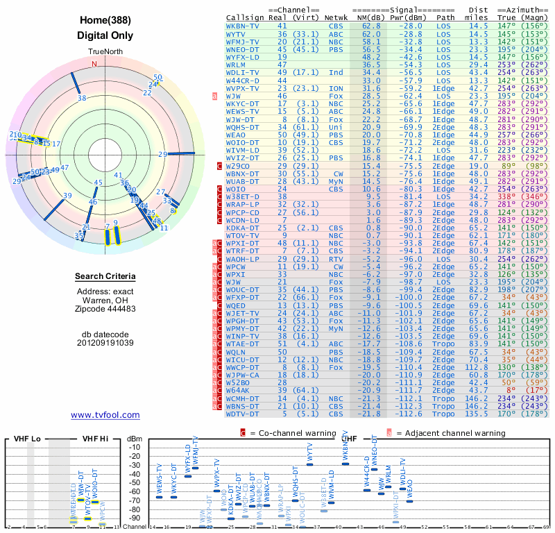 Here are the results for your location. The transmitter database was last updated on June 7, 2013. For more information about these plots and how to interpret them, please check out the Signal Analysis FAQ.