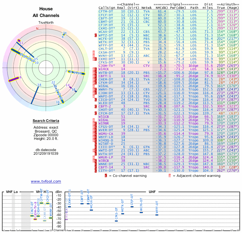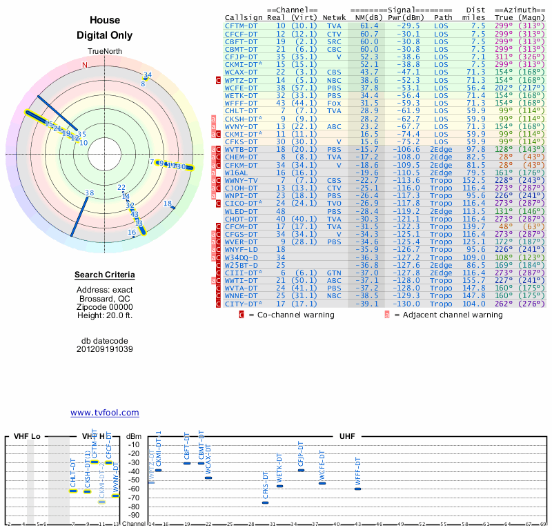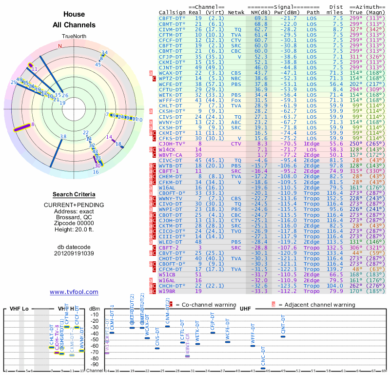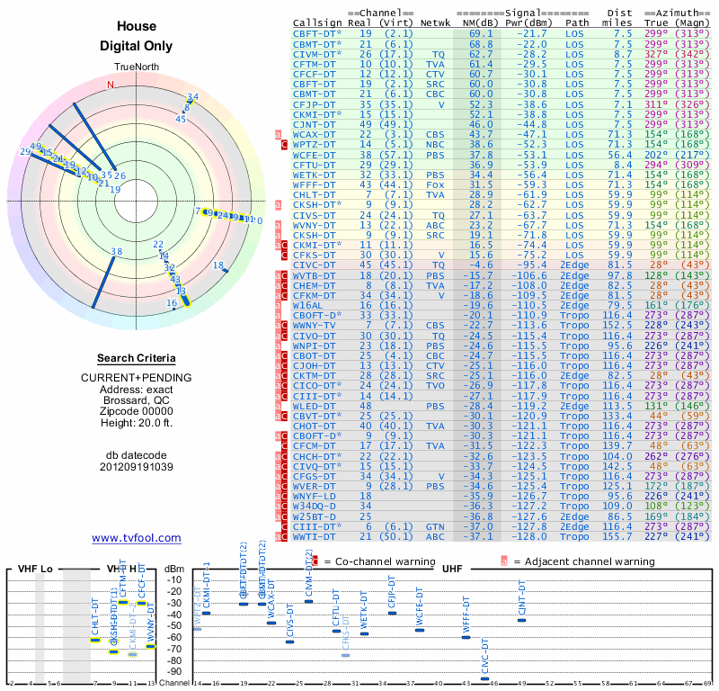 Here are the results for your location. The transmitter database was last updated on June 7, 2013. For more information about these plots and how to interpret them, please check out the Signal Analysis FAQ.