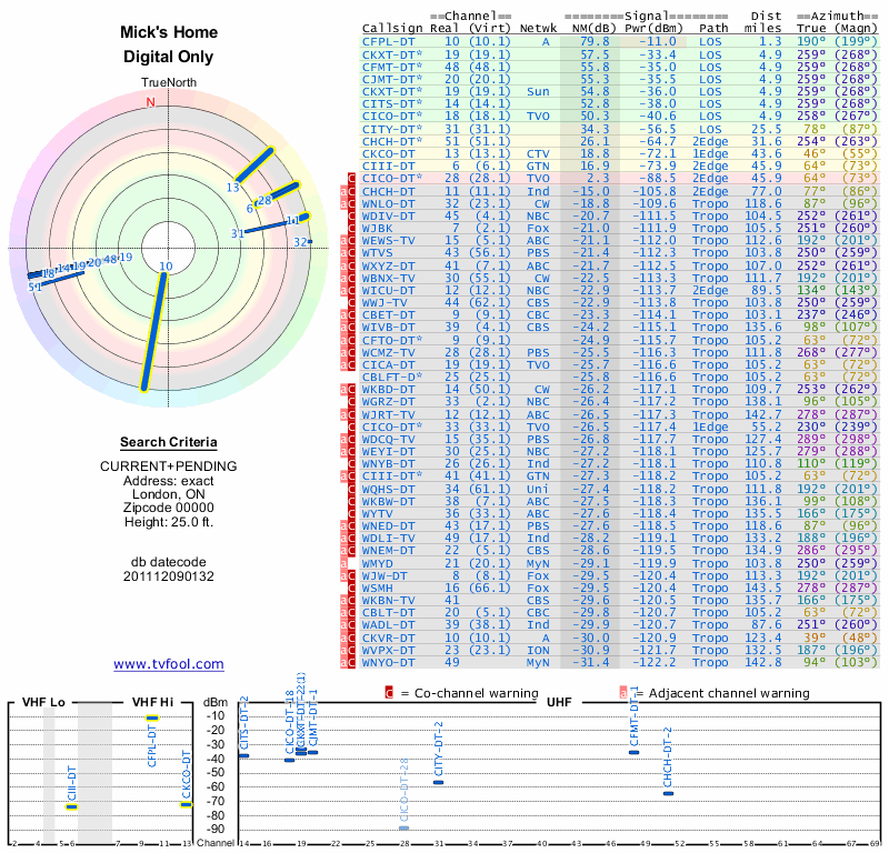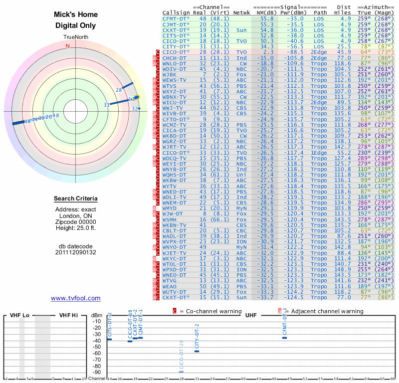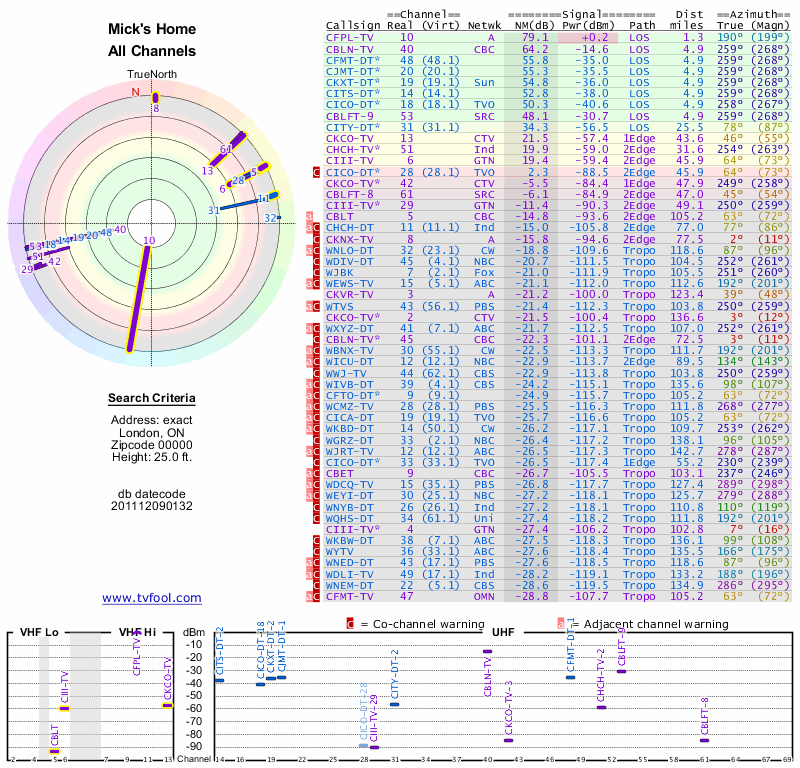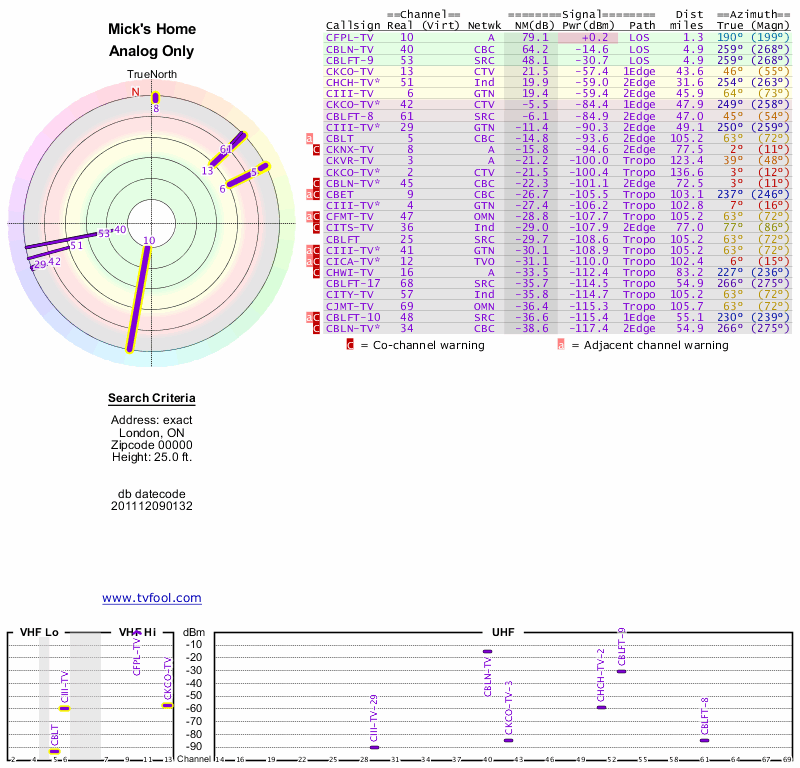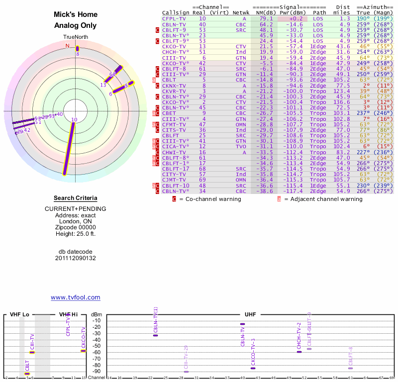 Here are the results for your location. The transmitter database was last updated on June 7, 2013. For more information about these plots and how to interpret them, please check out the Signal Analysis FAQ.