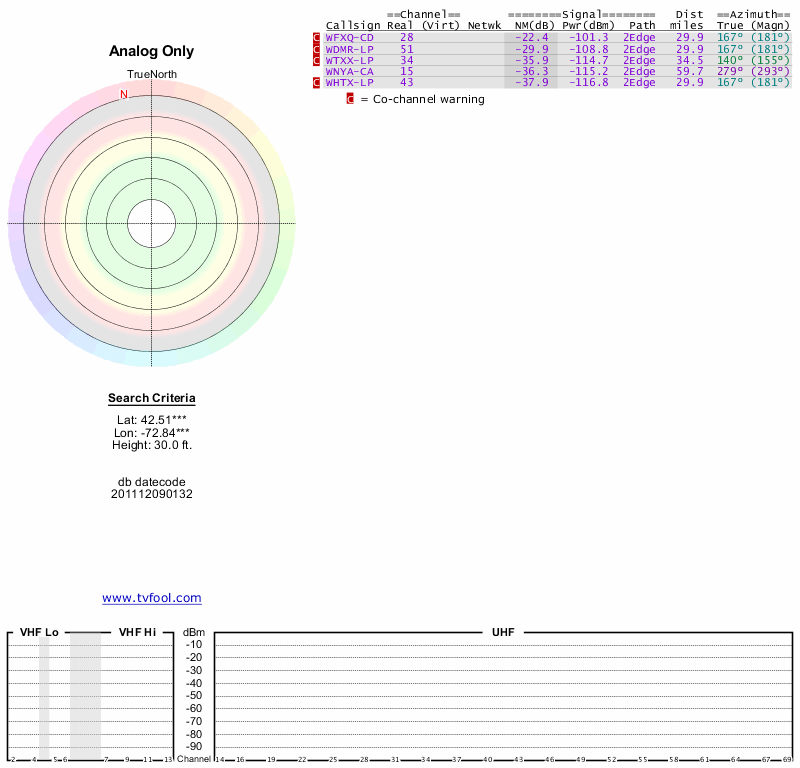 Here are the results for your location. The transmitter database was last updated on June 7, 2013. For more information about these plots and how to interpret them, please check out the Signal Analysis FAQ.