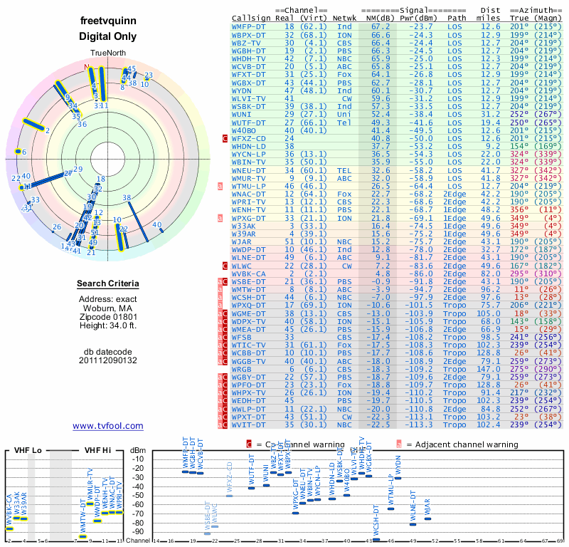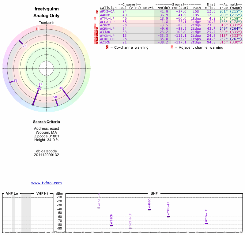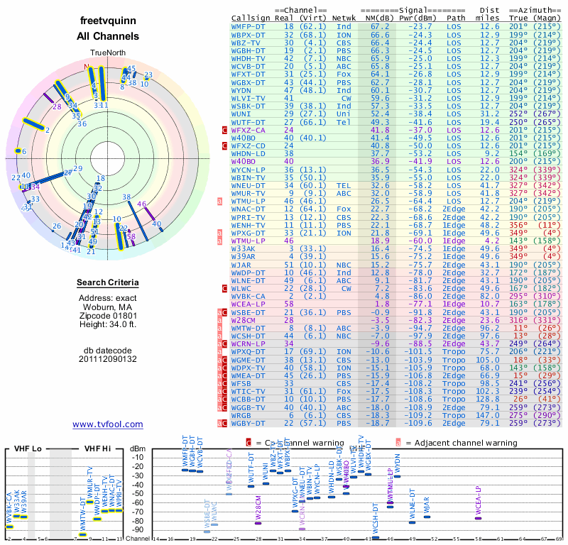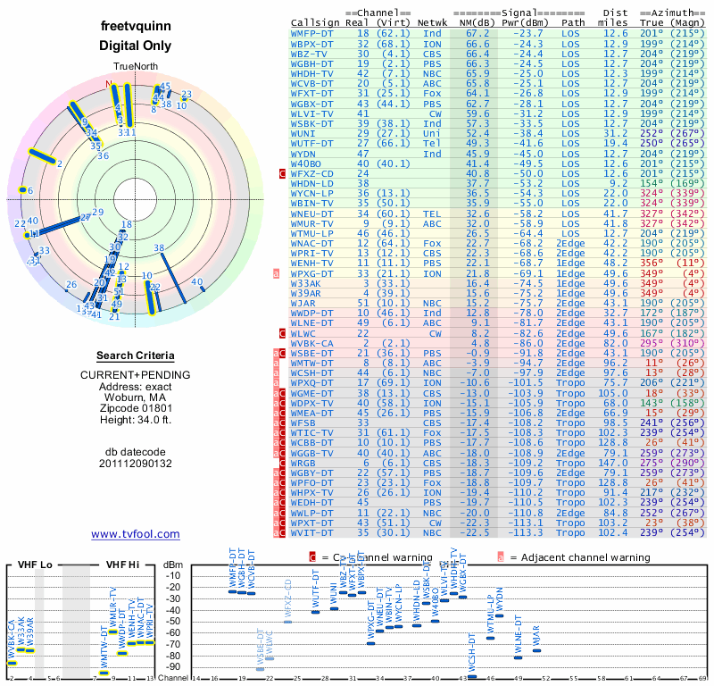 Here are the results for your location. The transmitter database was last updated on June 7, 2013. For more information about these plots and how to interpret them, please check out the Signal Analysis FAQ.