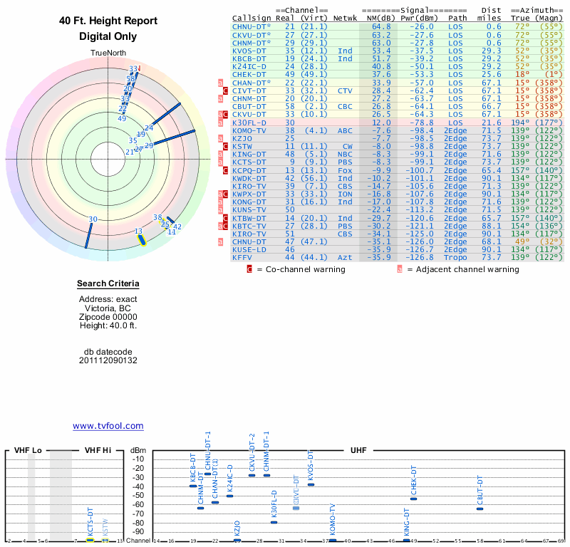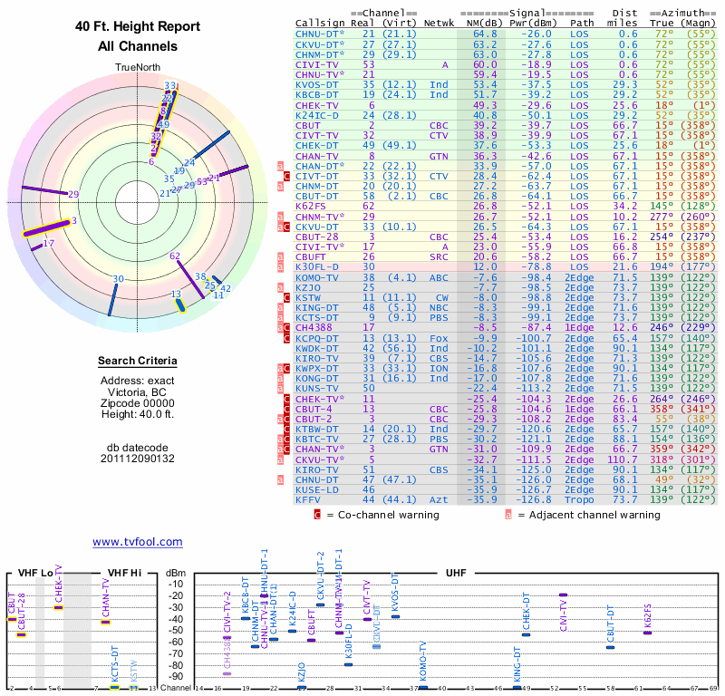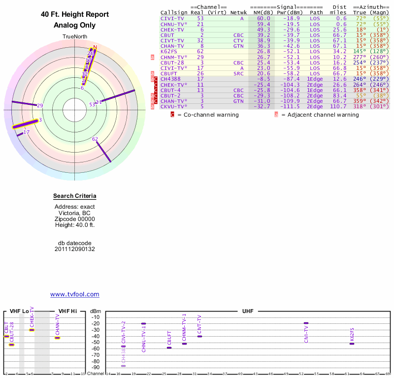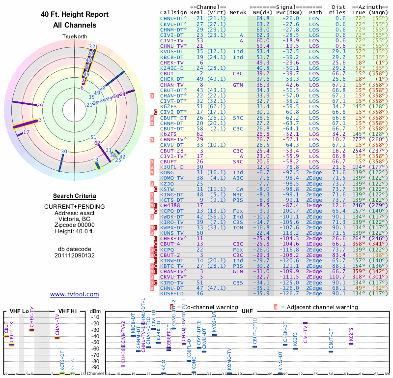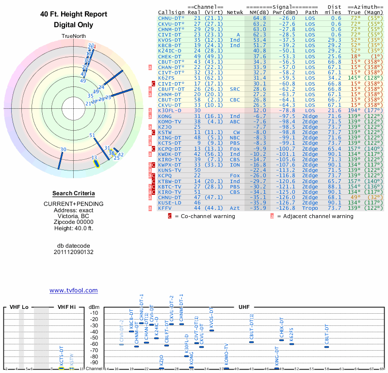 Here are the results for your location. The transmitter database was last updated on June 7, 2013. For more information about these plots and how to interpret them, please check out the Signal Analysis FAQ.
