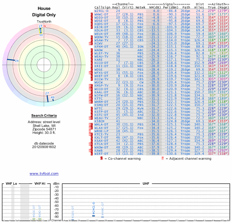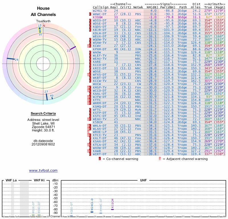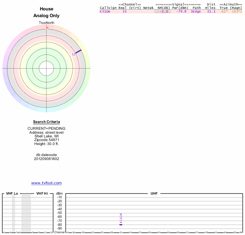 Here are the results for your location. The transmitter database was last updated on June 7, 2013. For more information about these plots and how to interpret them, please check out the Signal Analysis FAQ.