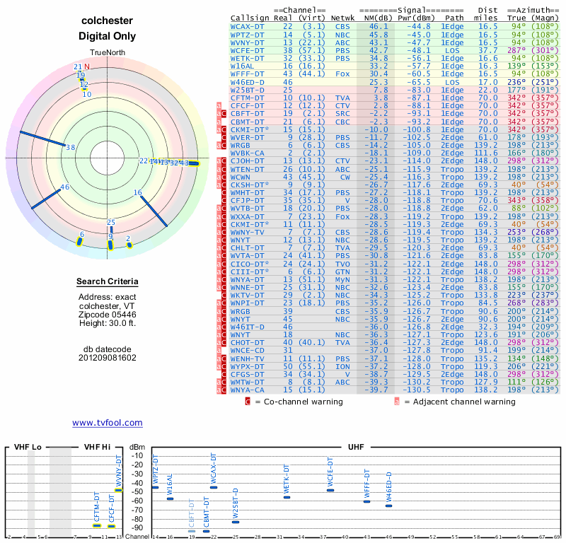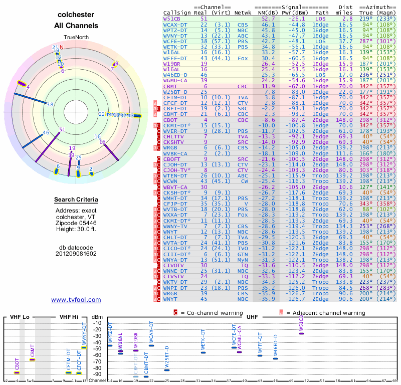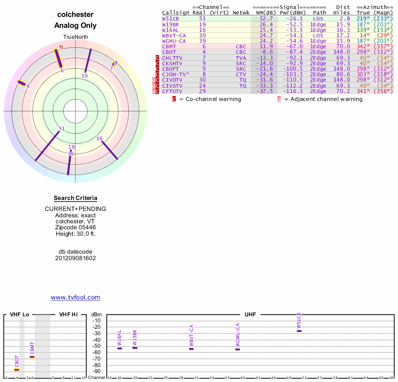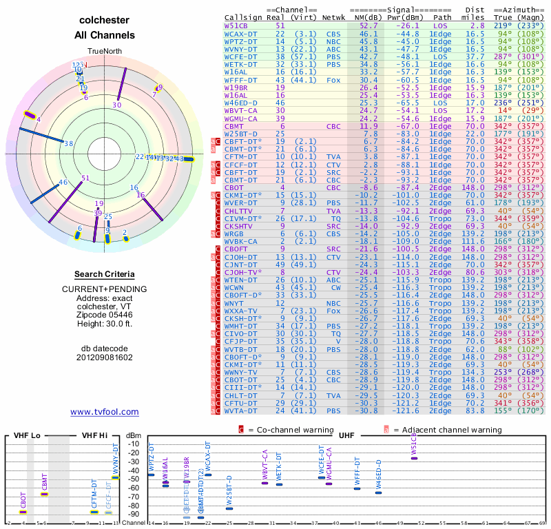 Here are the results for your location. The transmitter database was last updated on June 7, 2013. For more information about these plots and how to interpret them, please check out the Signal Analysis FAQ.