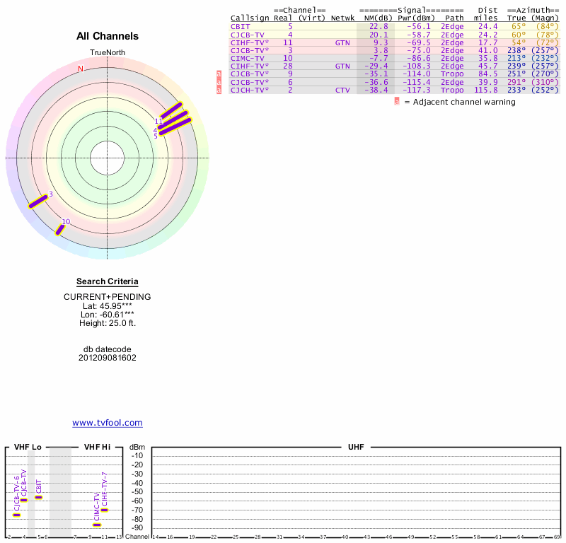 Here are the results for your location. The transmitter database was last updated on June 7, 2013. For more information about these plots and how to interpret them, please check out the Signal Analysis FAQ.