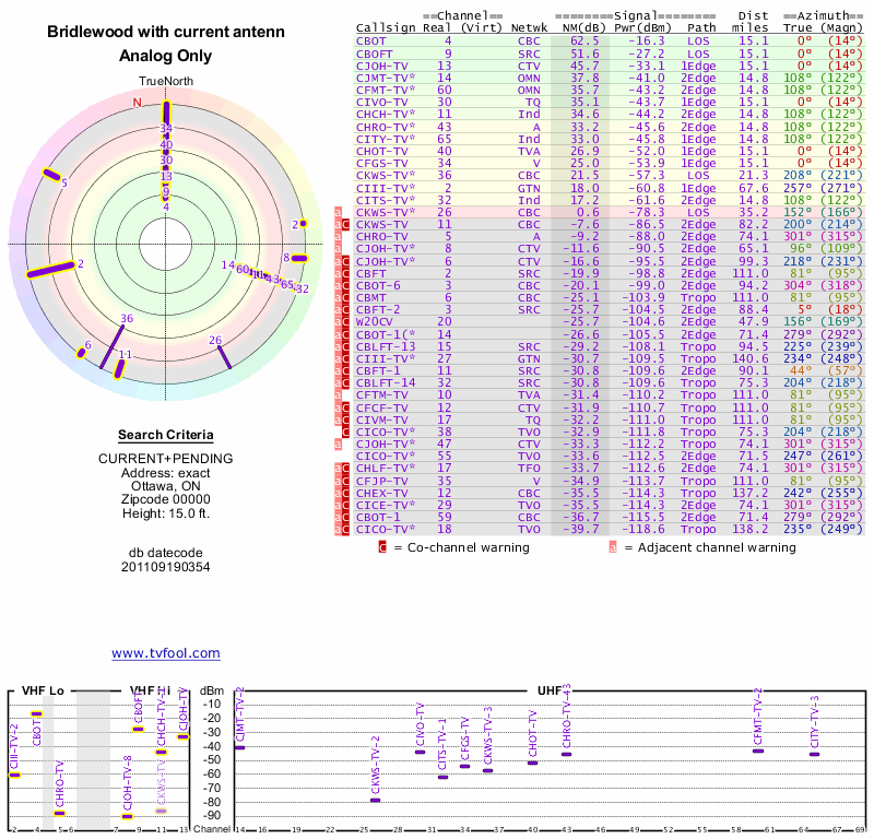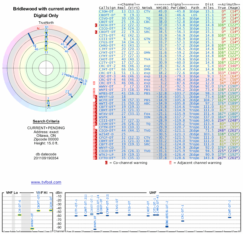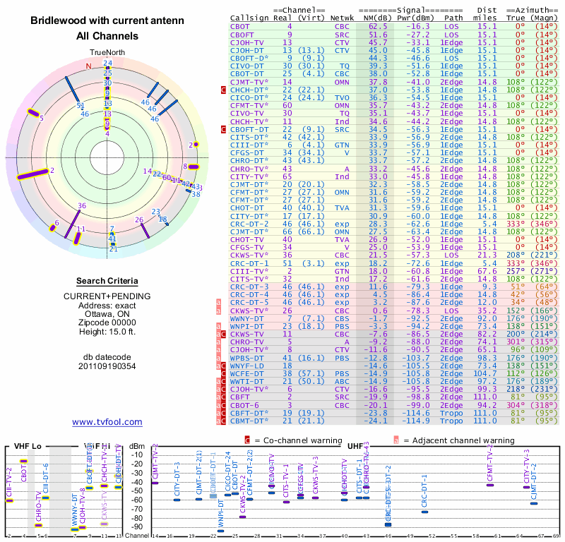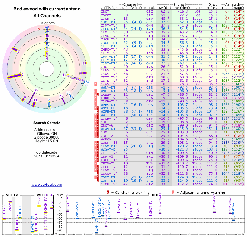 Here are the results for your location. The transmitter database was last updated on June 7, 2013. For more information about these plots and how to interpret them, please check out the Signal Analysis FAQ.