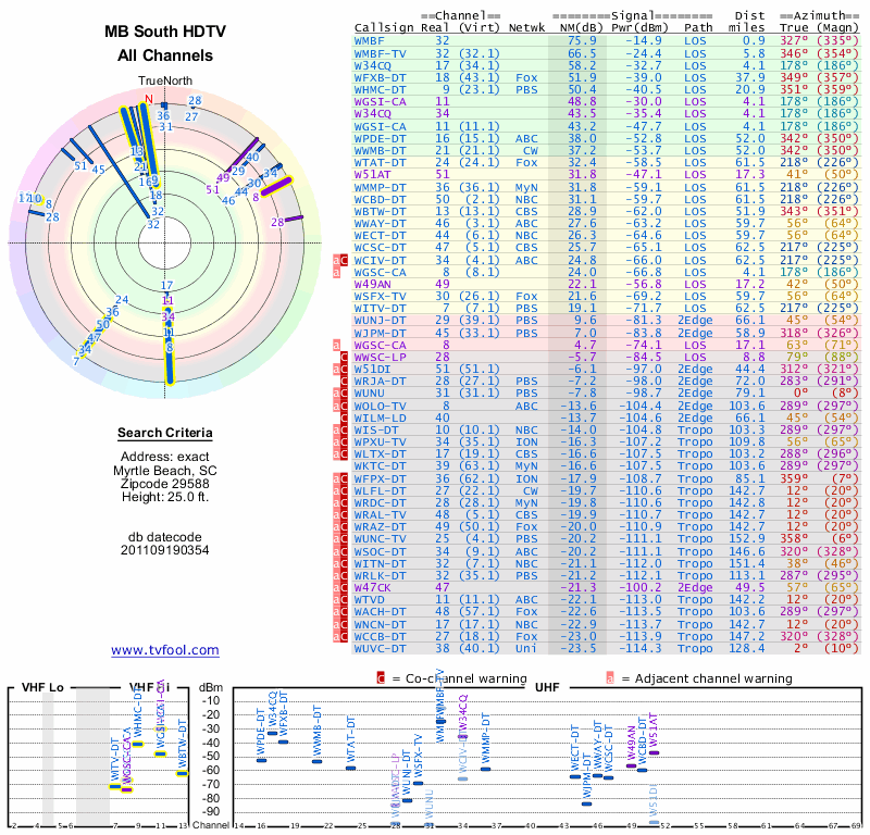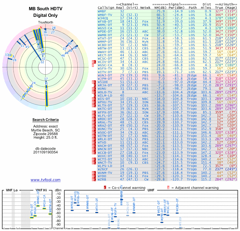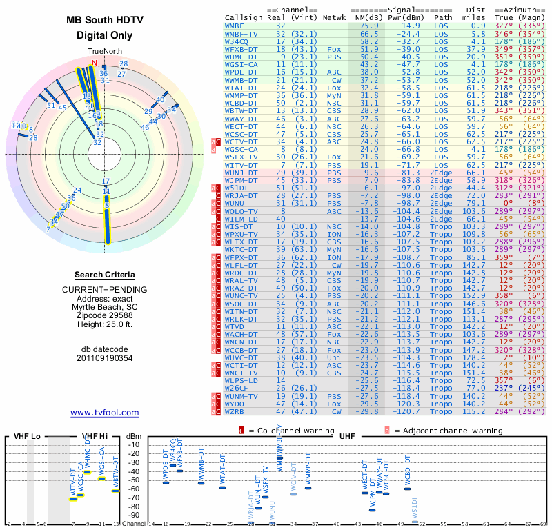 Here are the results for your location. The transmitter database was last updated on June 7, 2013. For more information about these plots and how to interpret them, please check out the Signal Analysis FAQ.