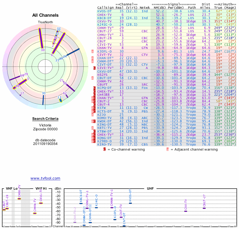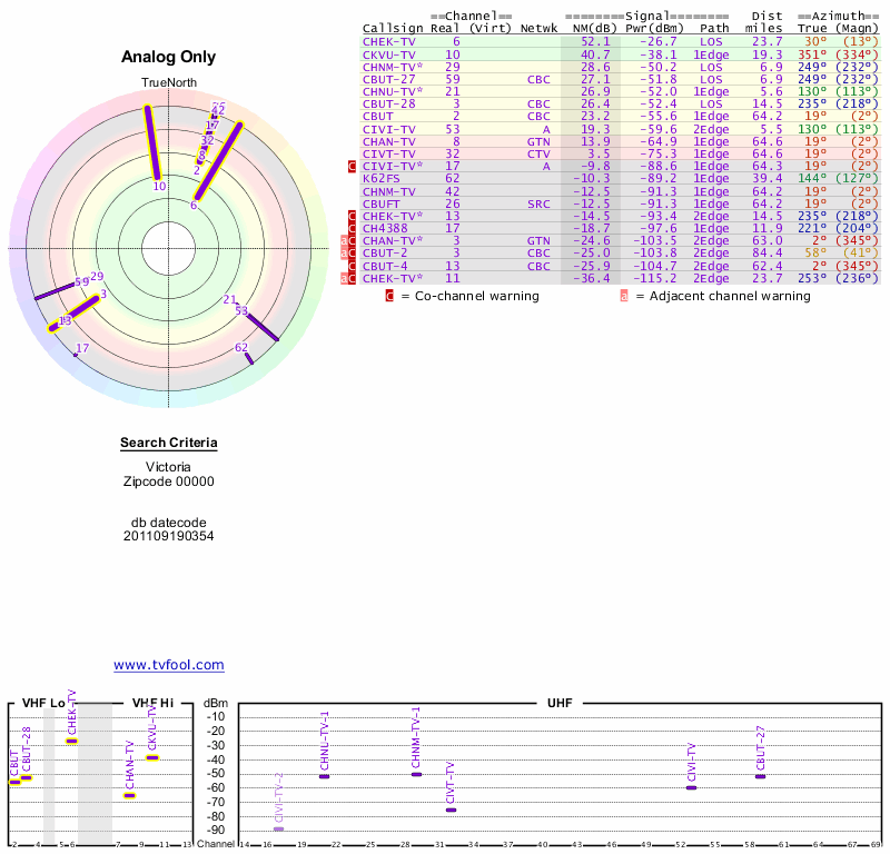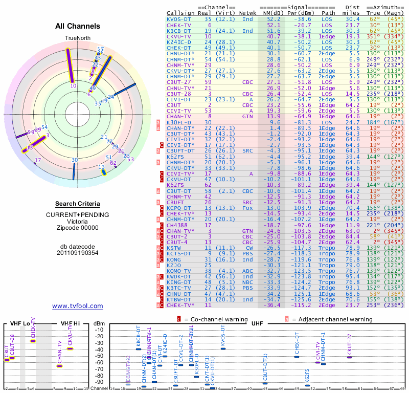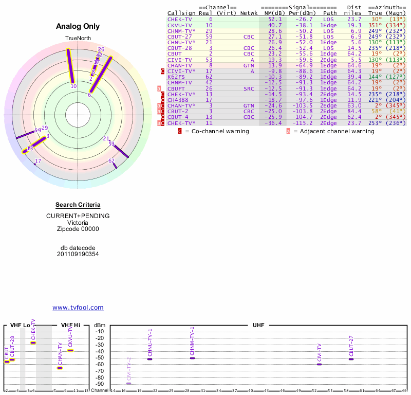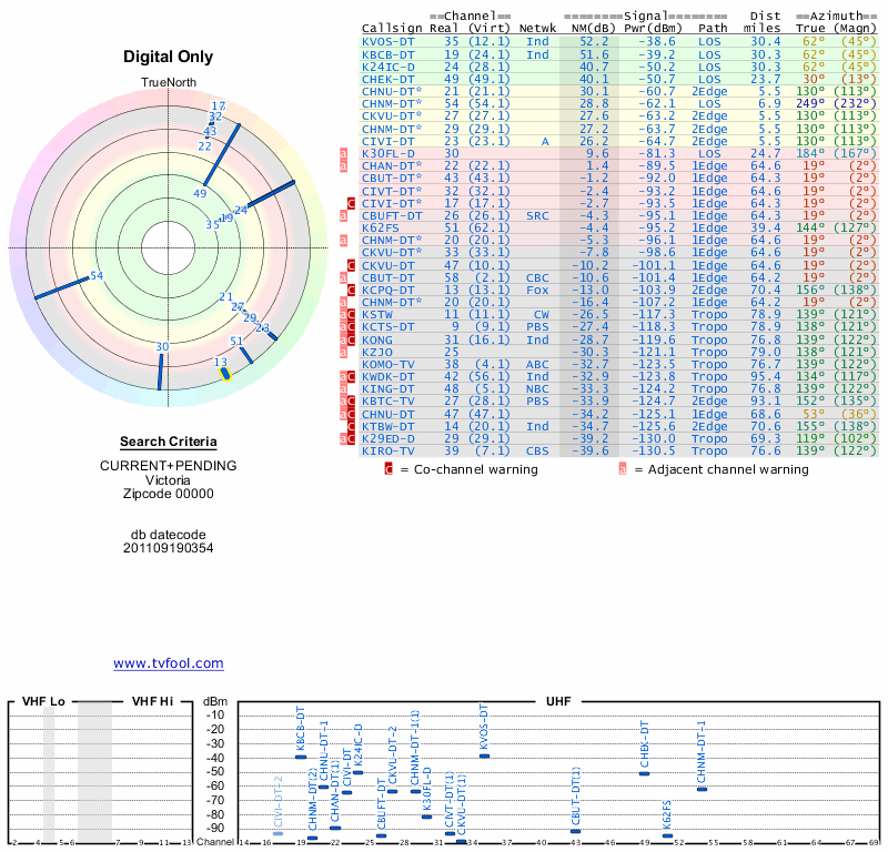 Here are the results for your location. The transmitter database was last updated on June 7, 2013. For more information about these plots and how to interpret them, please check out the Signal Analysis FAQ.