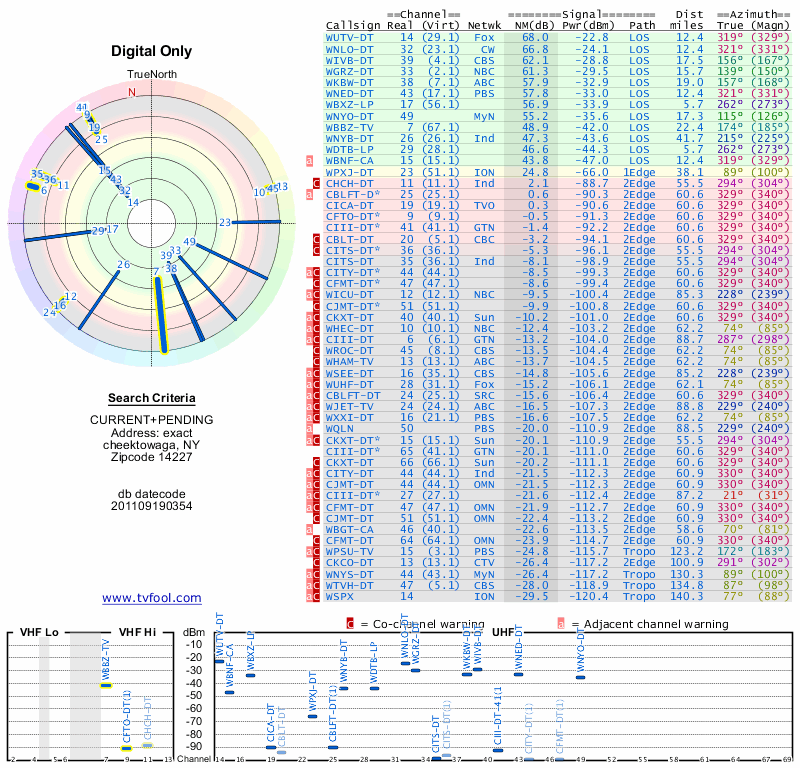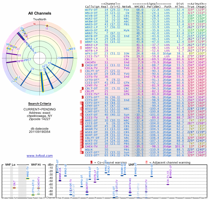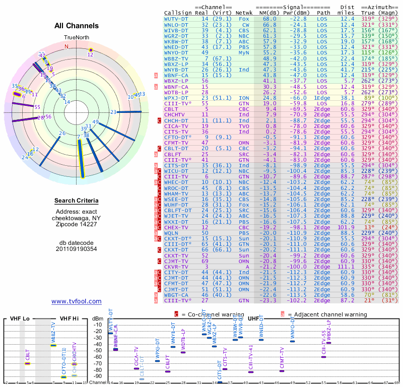 Here are the results for your location. The transmitter database was last updated on June 7, 2013. For more information about these plots and how to interpret them, please check out the Signal Analysis FAQ.