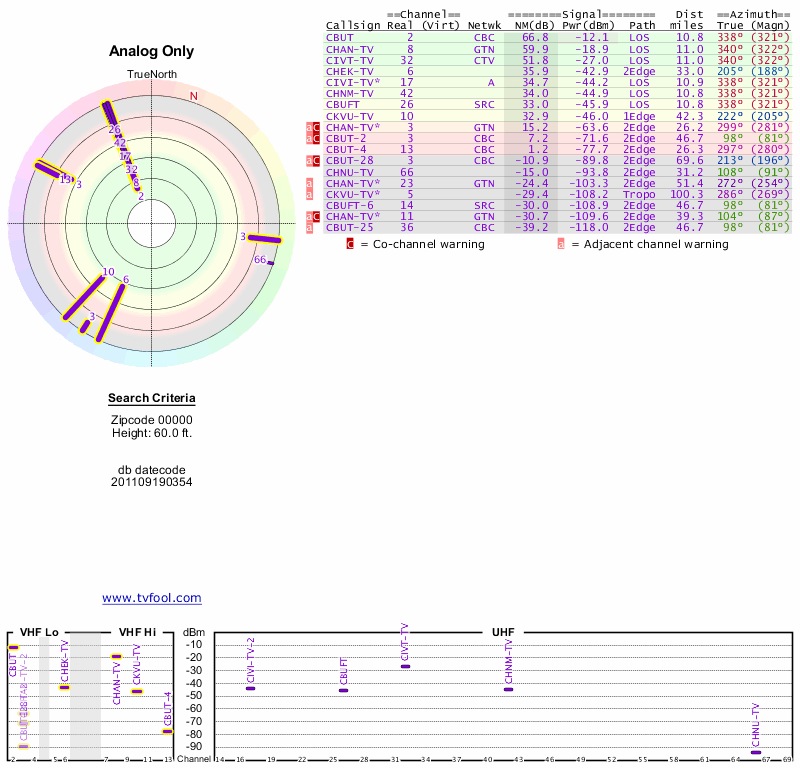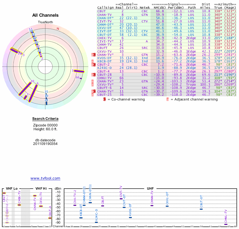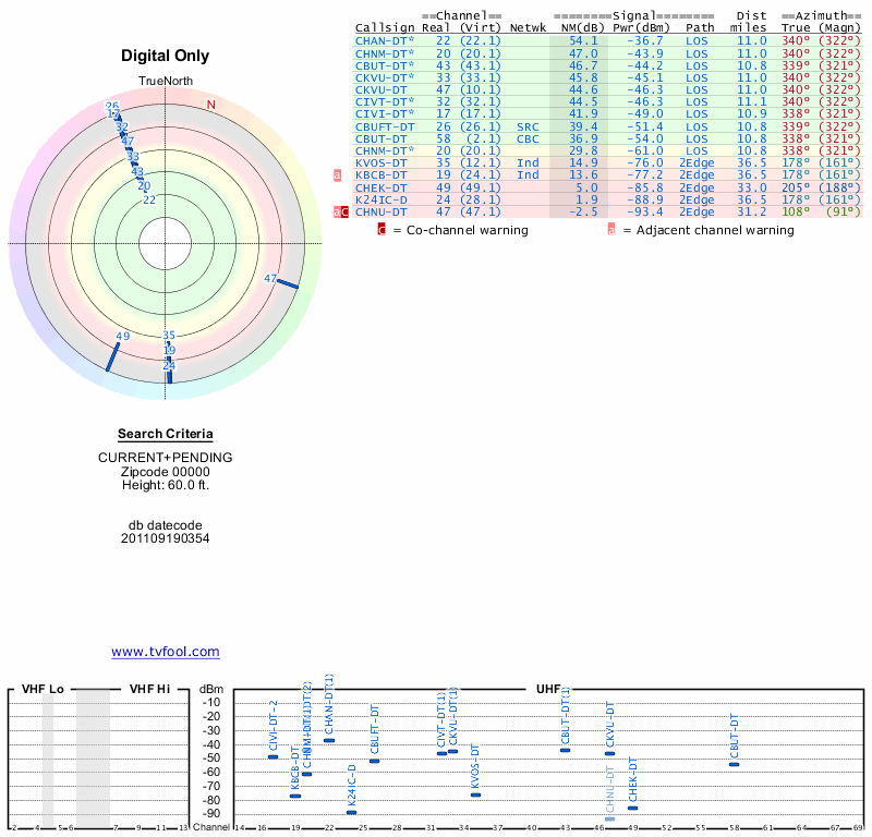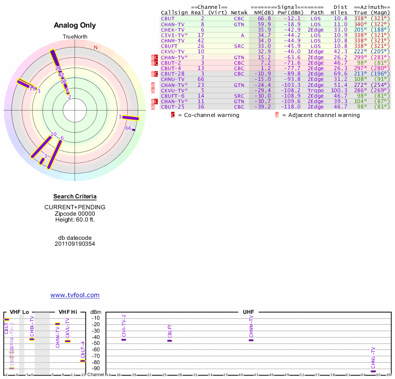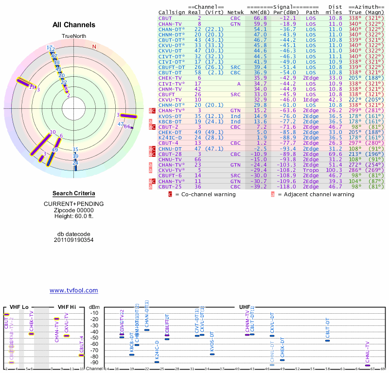 Here are the results for your location. The transmitter database was last updated on June 7, 2013. For more information about these plots and how to interpret them, please check out the Signal Analysis FAQ.