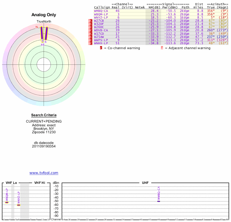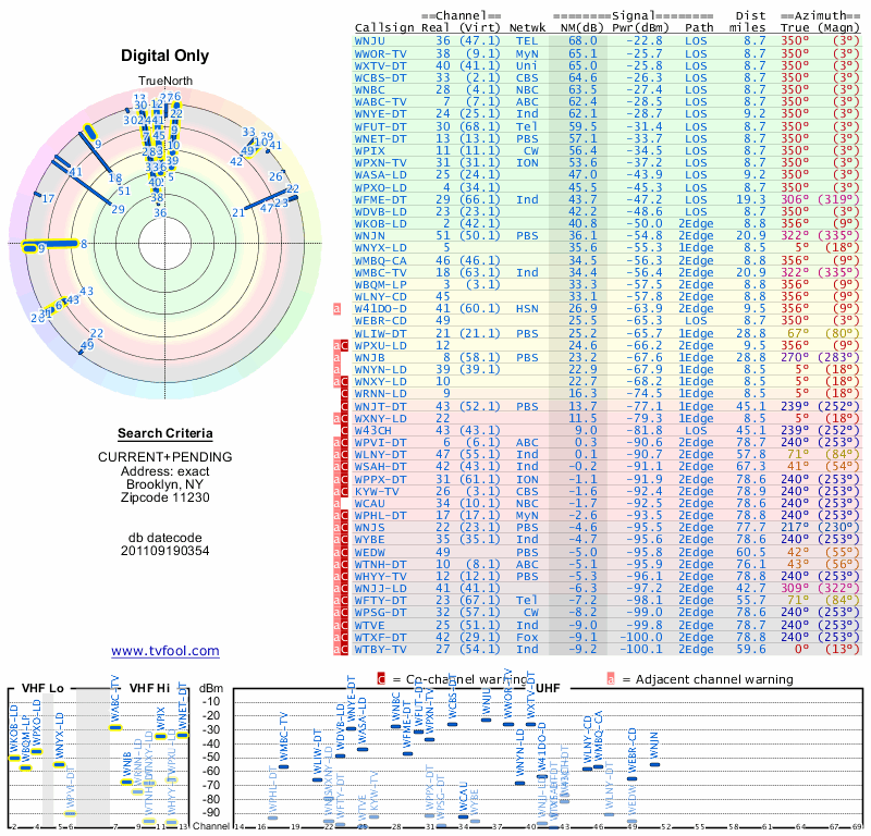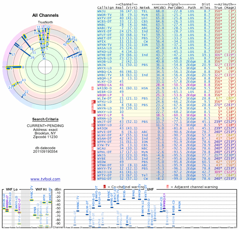Here are the results for your location. The transmitter database was last updated on June 7, 2013. For more information about these plots and how to interpret them, please check out the Signal Analysis FAQ.