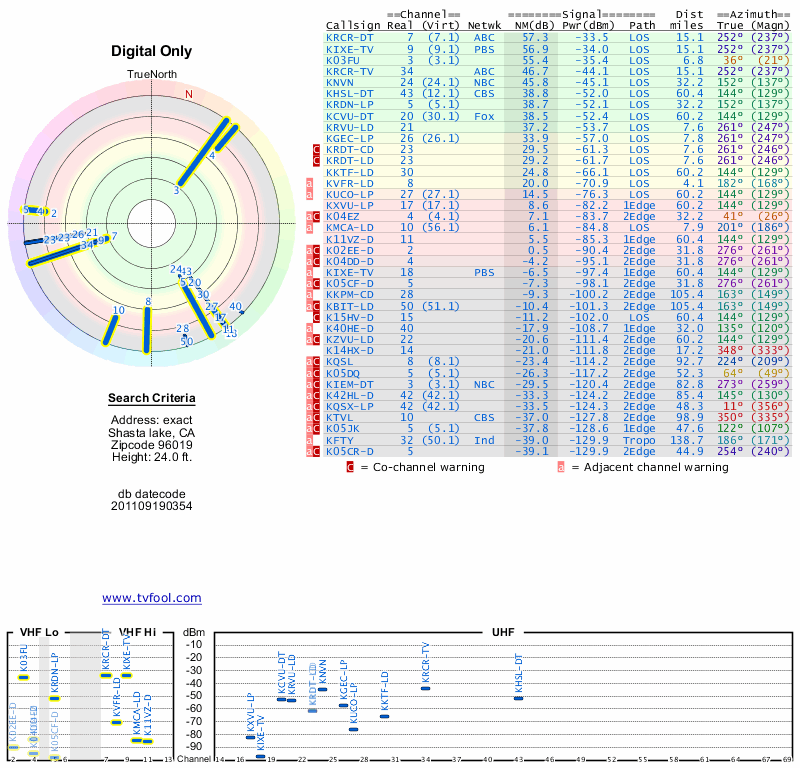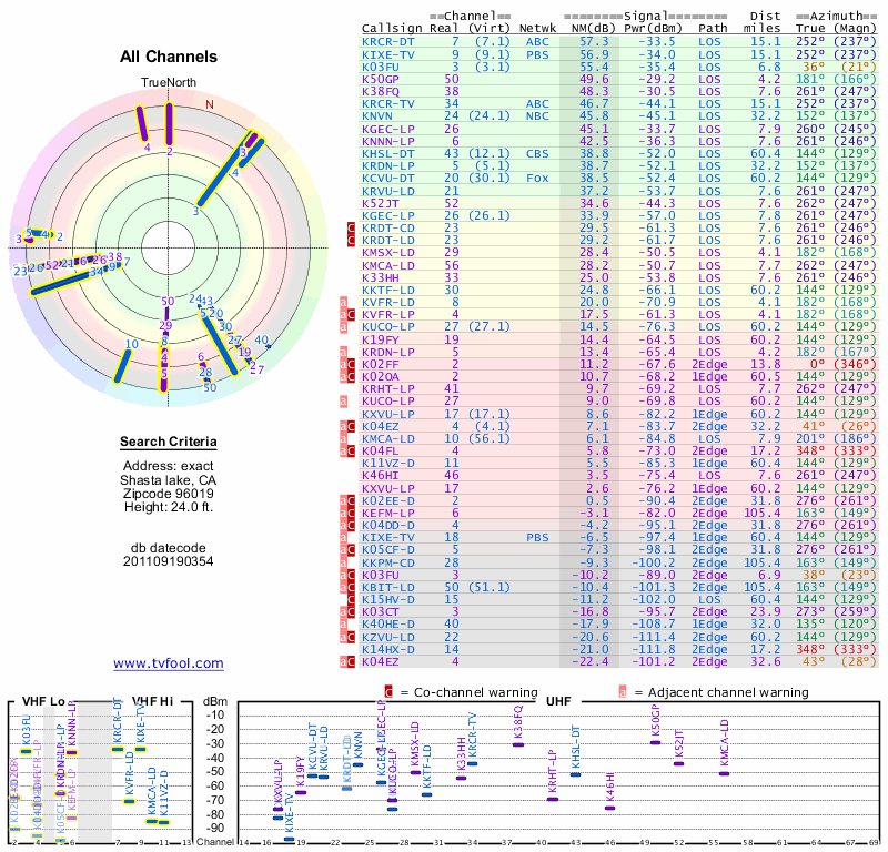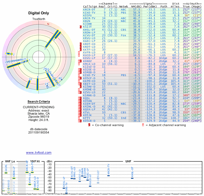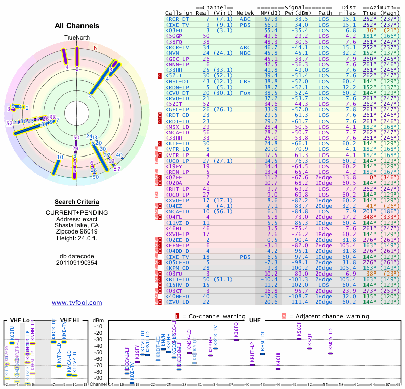 Here are the results for your location. The transmitter database was last updated on June 7, 2013. For more information about these plots and how to interpret them, please check out the Signal Analysis FAQ.