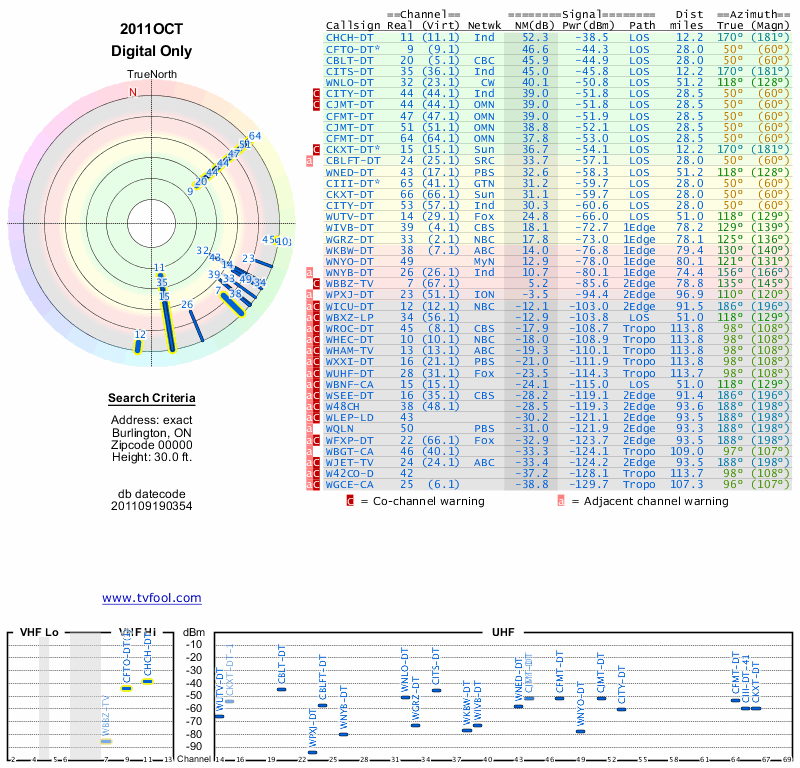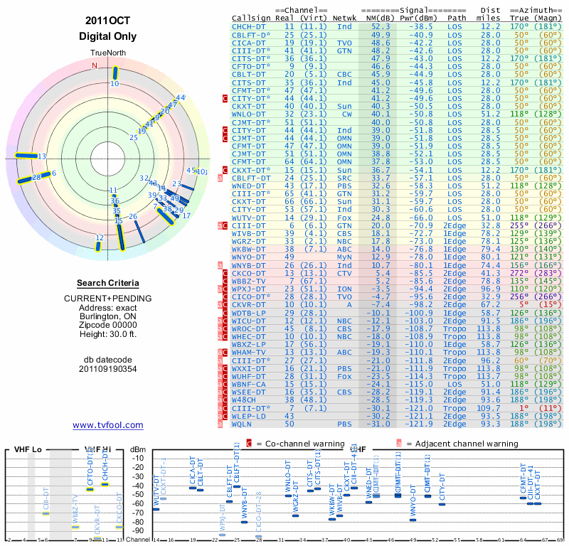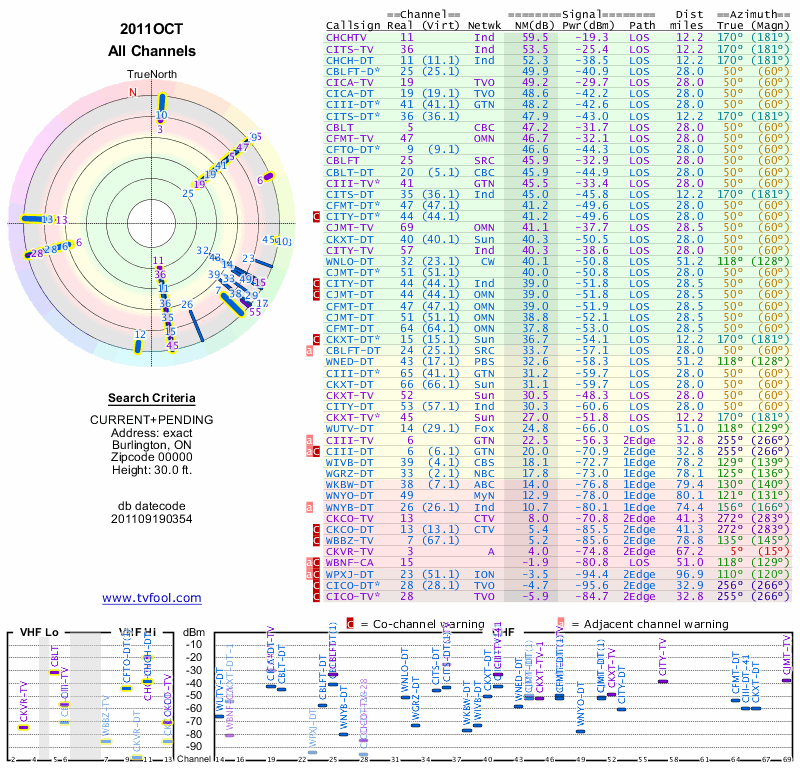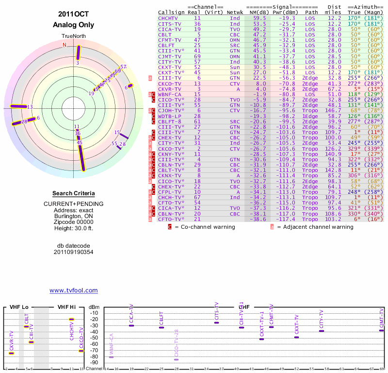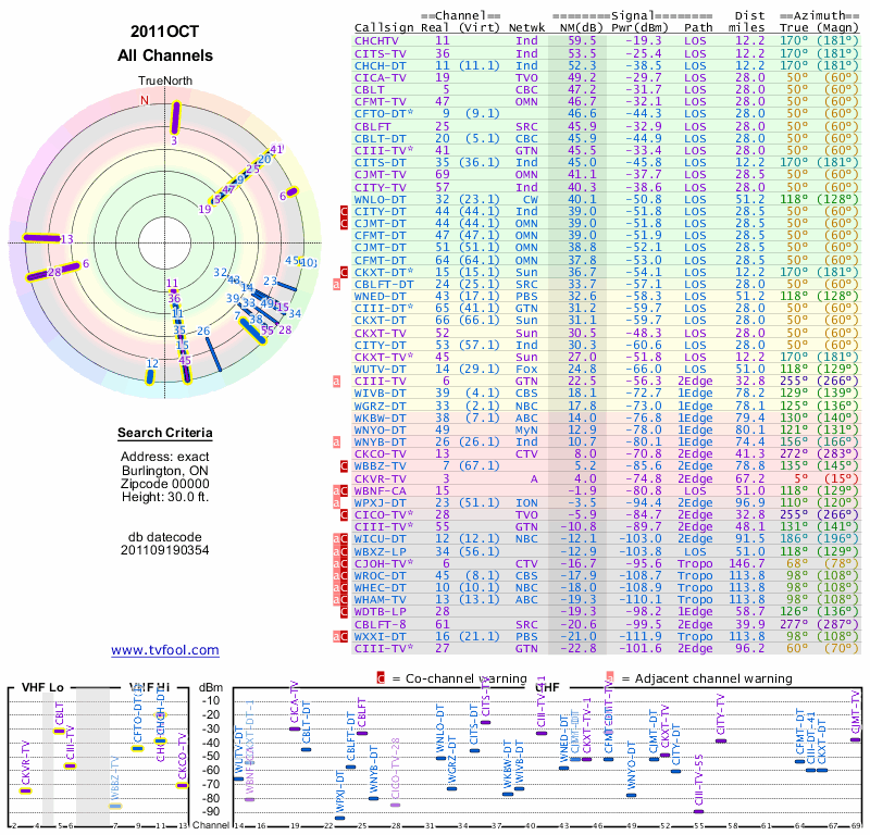Here are the results for your location. The transmitter database was last updated on June 7, 2013. For more information about these plots and how to interpret them, please check out the Signal Analysis FAQ.