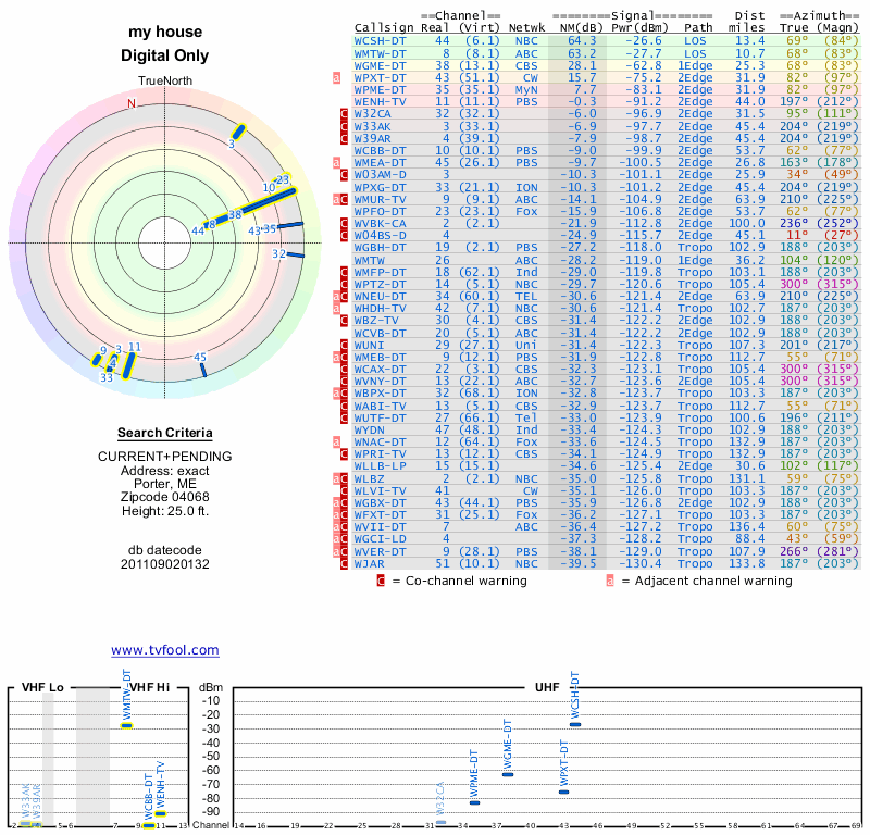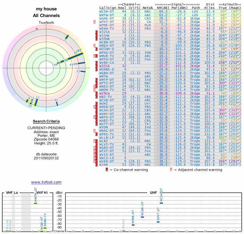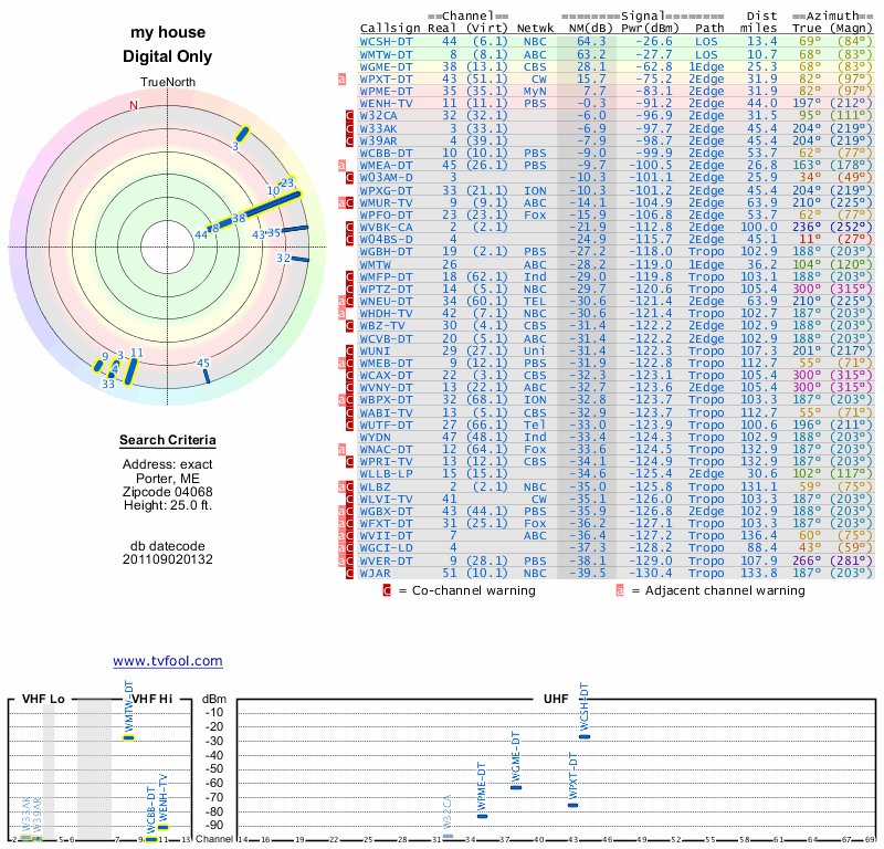 Here are the results for your location. The transmitter database was last updated on June 7, 2013. For more information about these plots and how to interpret them, please check out the Signal Analysis FAQ.