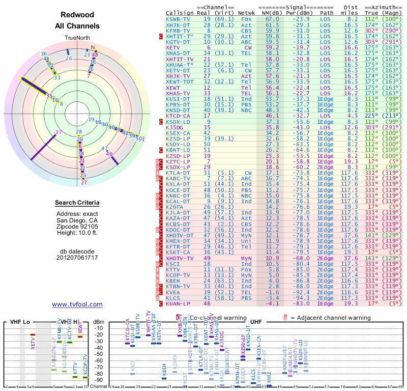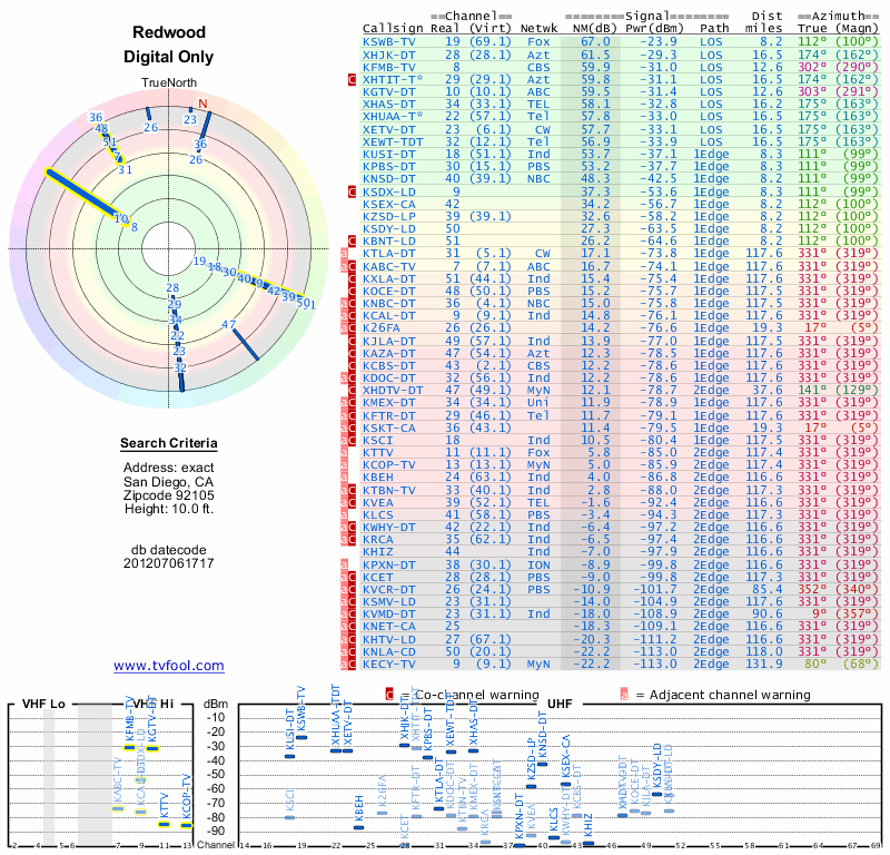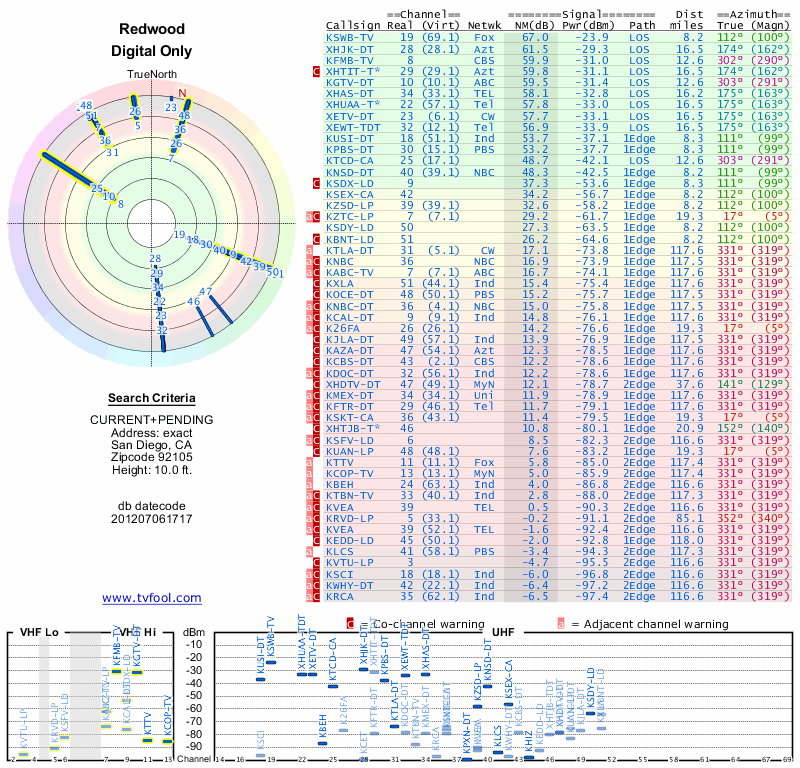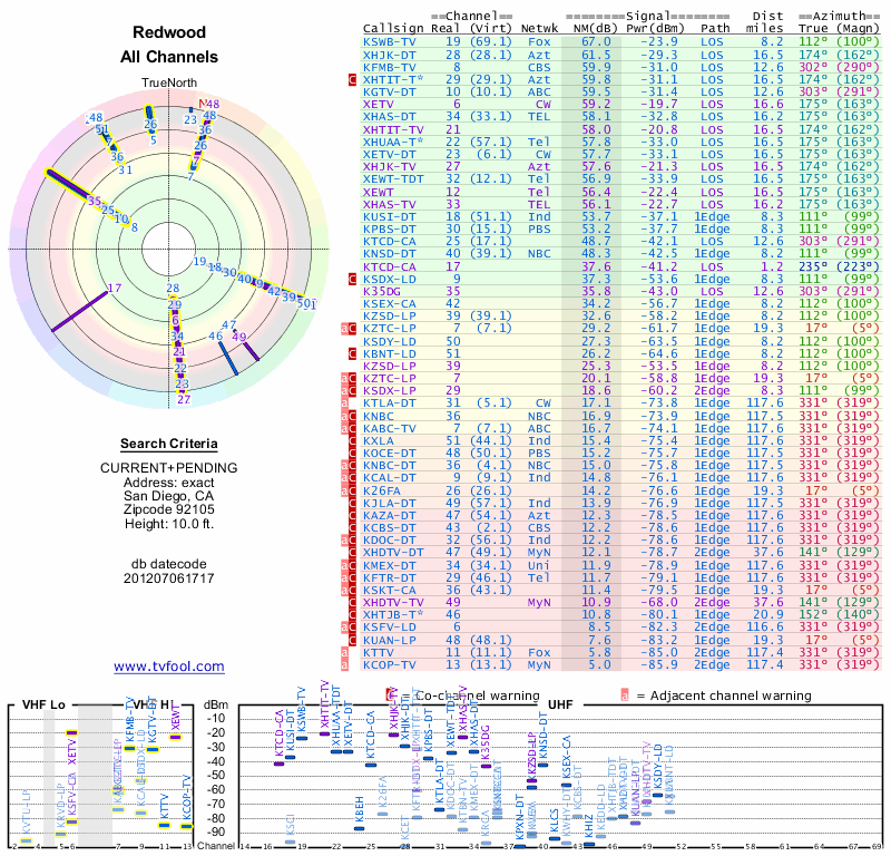 Here are the results for your location. The transmitter database was last updated on June 7, 2013. For more information about these plots and how to interpret them, please check out the Signal Analysis FAQ.