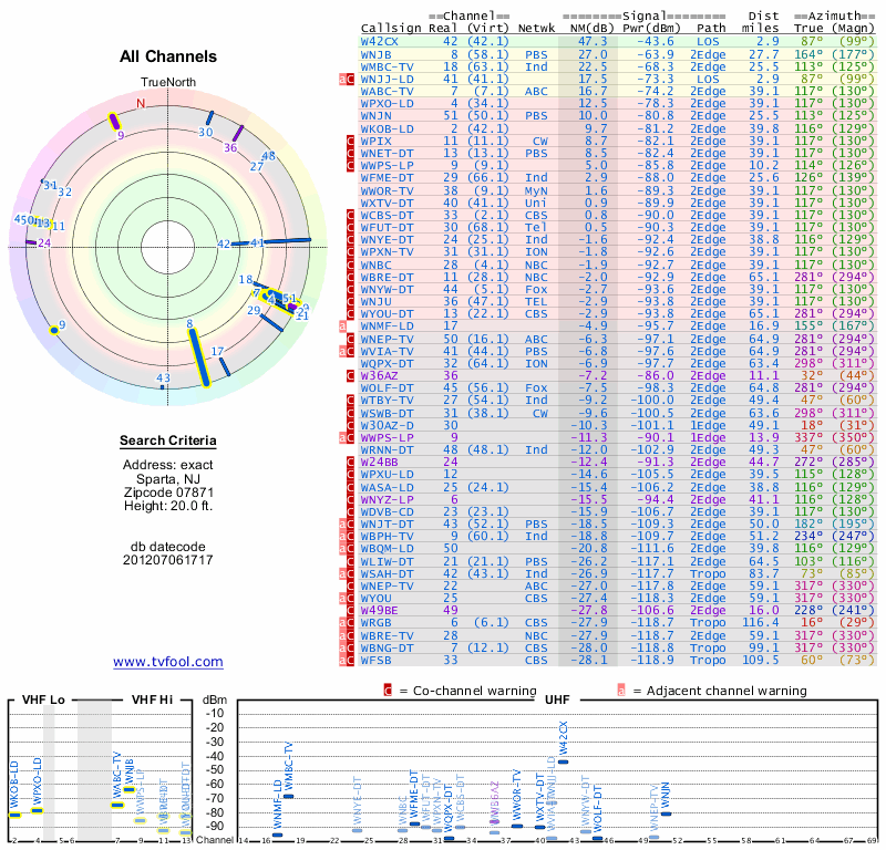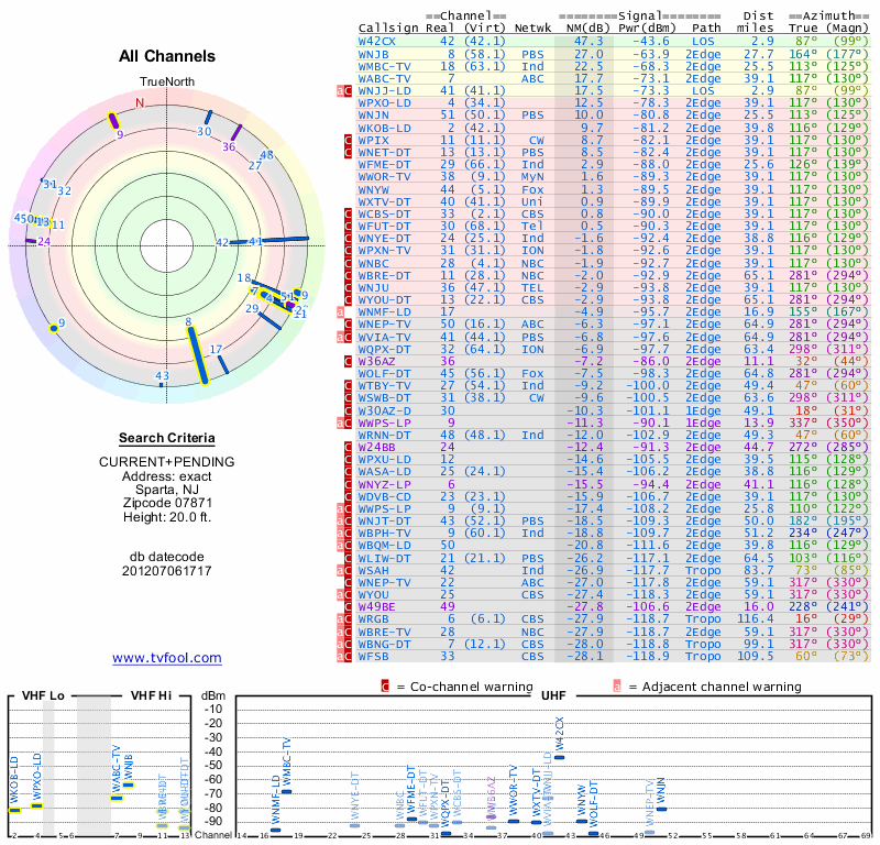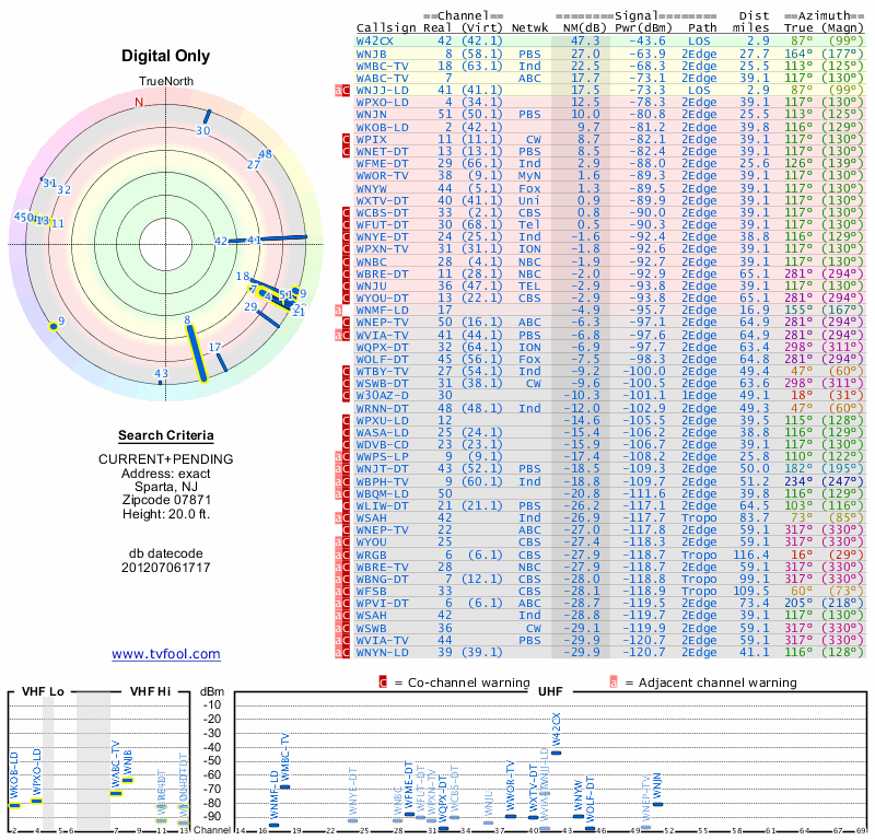 Here are the results for your location. The transmitter database was last updated on June 7, 2013. For more information about these plots and how to interpret them, please check out the Signal Analysis FAQ.