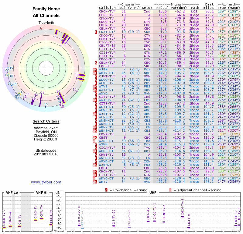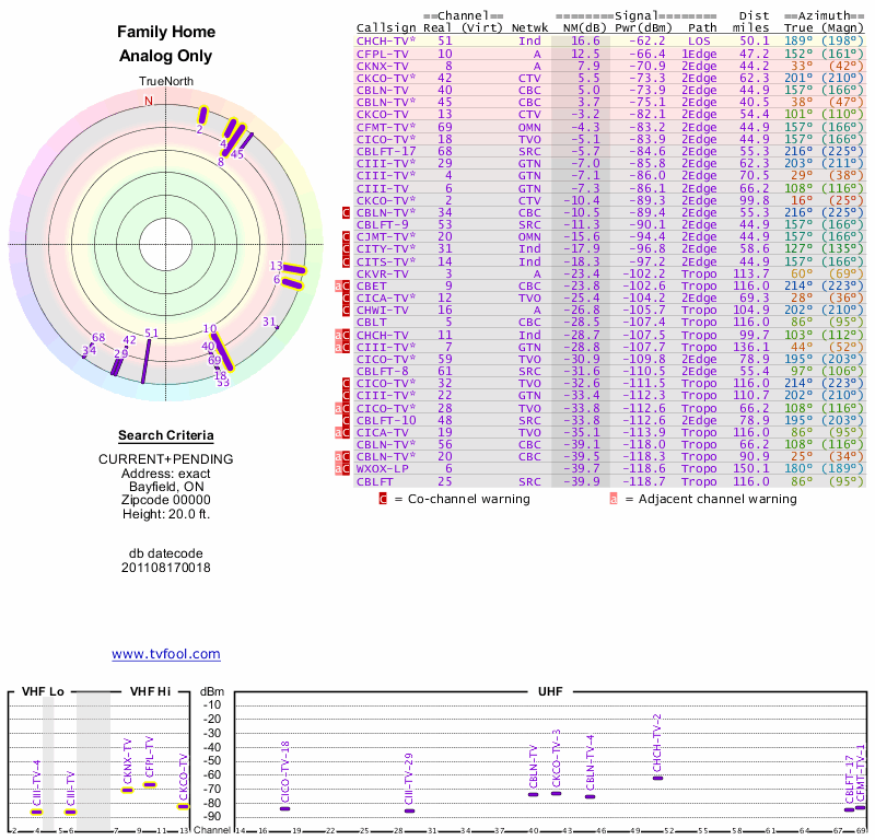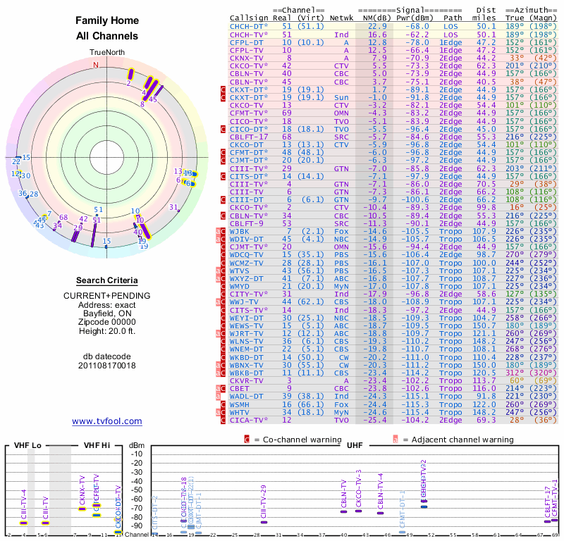 Here are the results for your location. The transmitter database was last updated on June 7, 2013. For more information about these plots and how to interpret them, please check out the Signal Analysis FAQ.