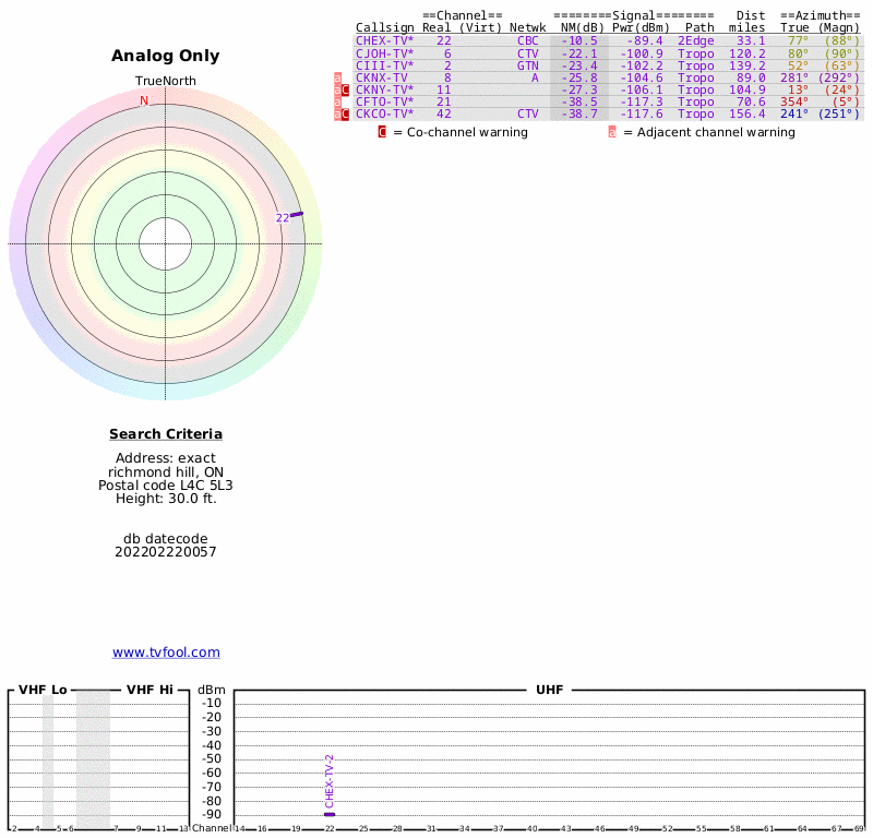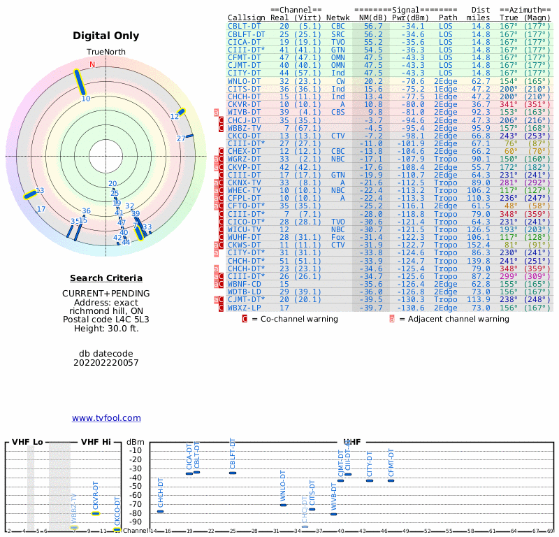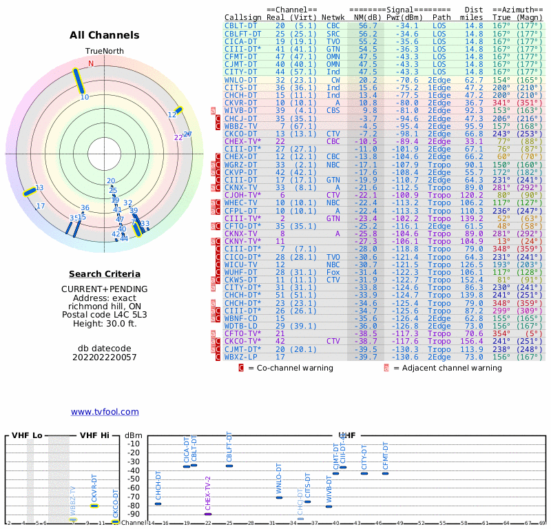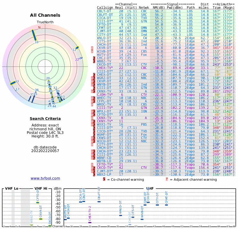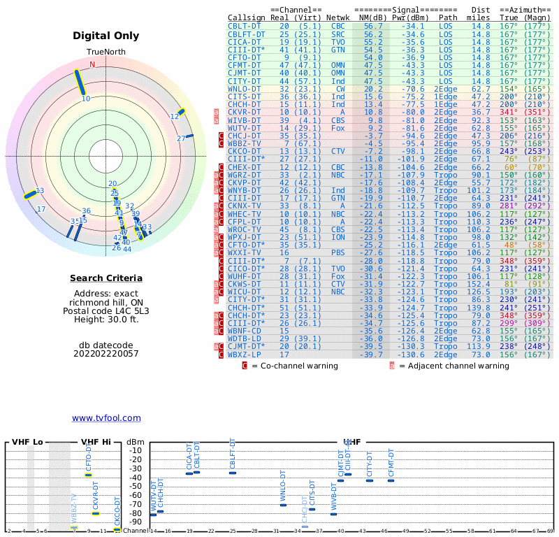 Here are the results for your location. The transmitter database was last updated on July 24, 2017. For more information about these plots and how to interpret them, please check out the Signal Analysis FAQ.