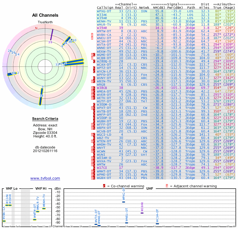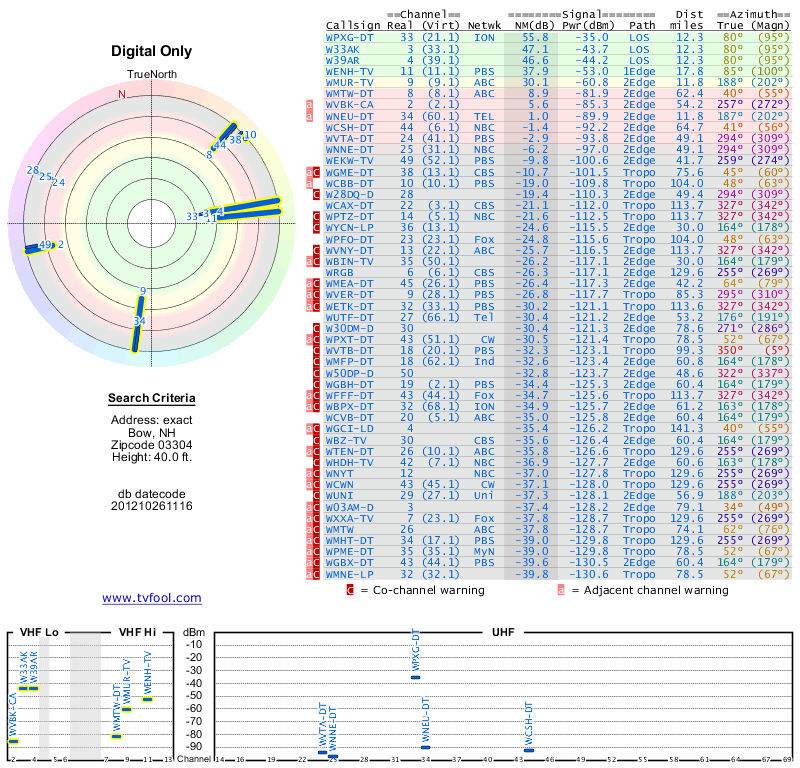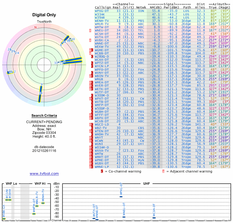 Here are the results for your location. The transmitter database was last updated on June 7, 2013. For more information about these plots and how to interpret them, please check out the Signal Analysis FAQ.