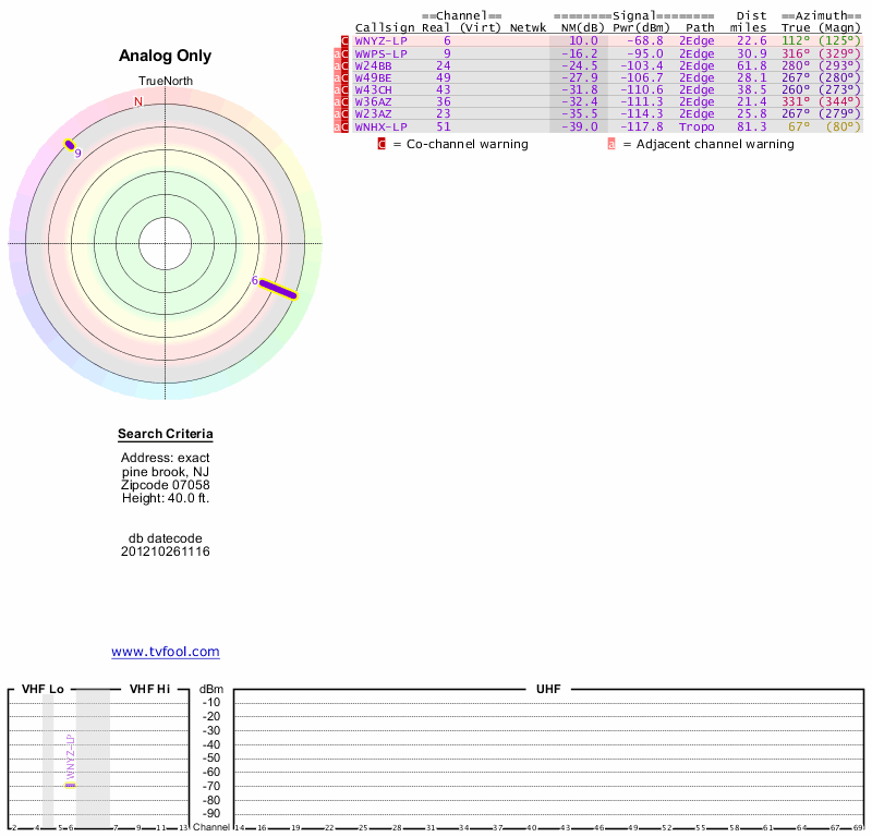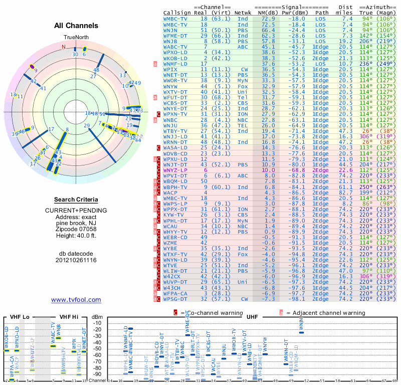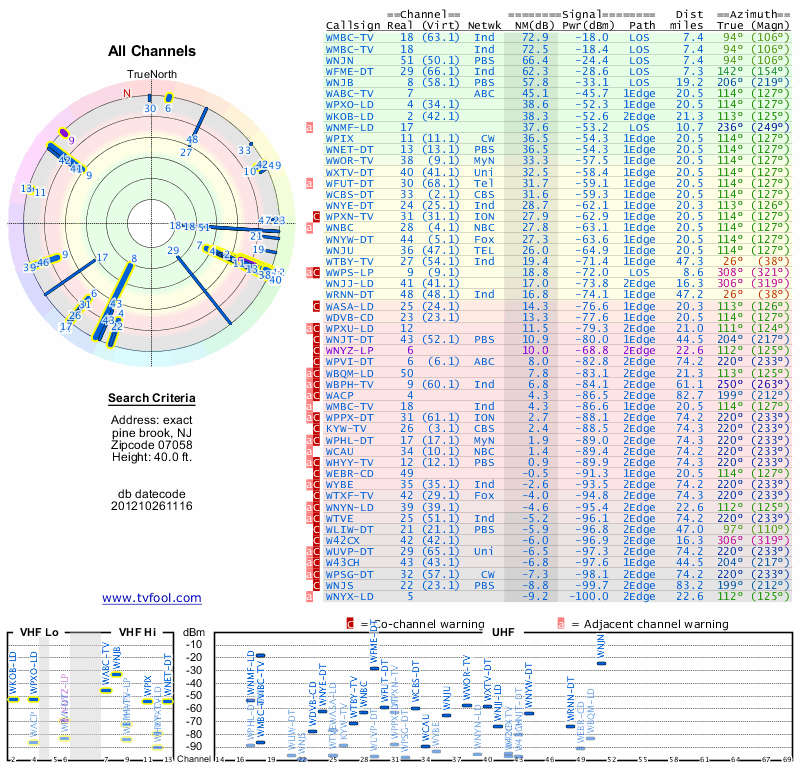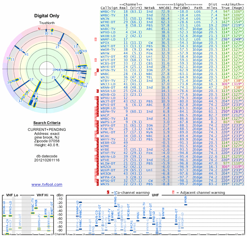 Here are the results for your location. The transmitter database was last updated on June 7, 2013. For more information about these plots and how to interpret them, please check out the Signal Analysis FAQ.