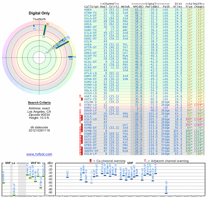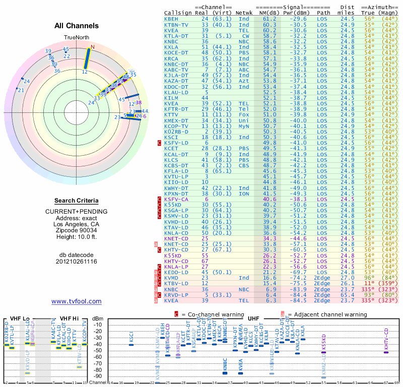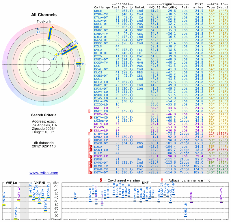 Here are the results for your location. The transmitter database was last updated on June 7, 2013. For more information about these plots and how to interpret them, please check out the Signal Analysis FAQ.