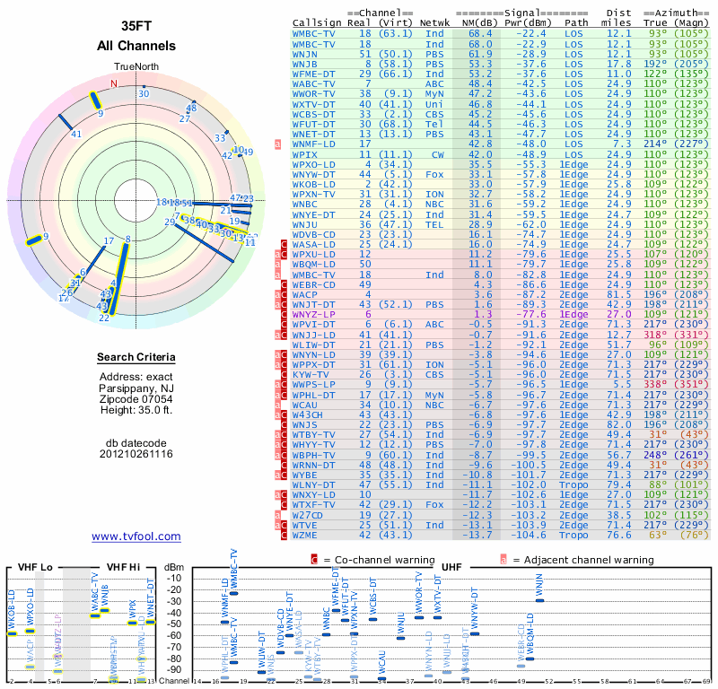 Here are the results for your location. The transmitter database was last updated on June 7, 2013. For more information about these plots and how to interpret them, please check out the Signal Analysis FAQ.