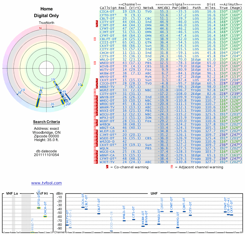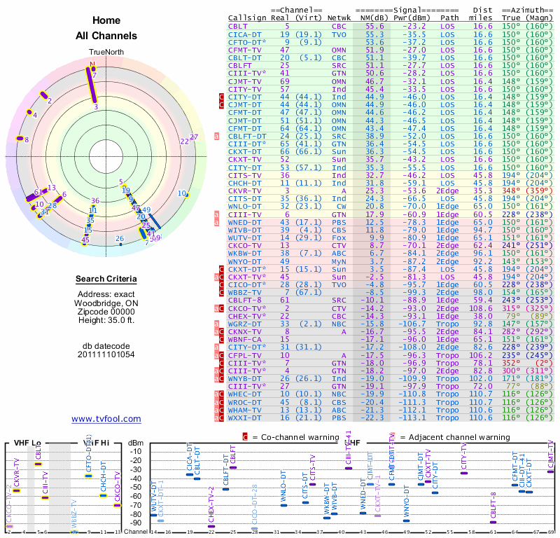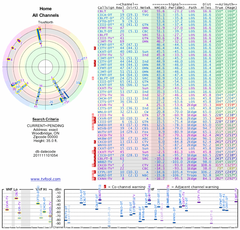 Here are the results for your location. The transmitter database was last updated on June 7, 2013. For more information about these plots and how to interpret them, please check out the Signal Analysis FAQ.