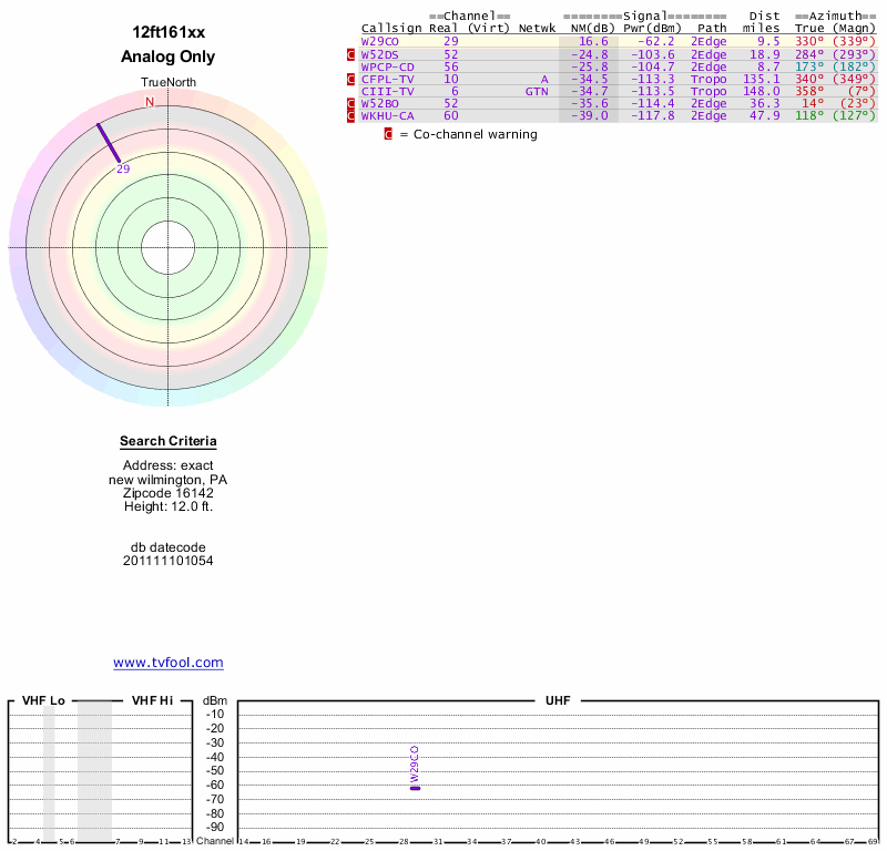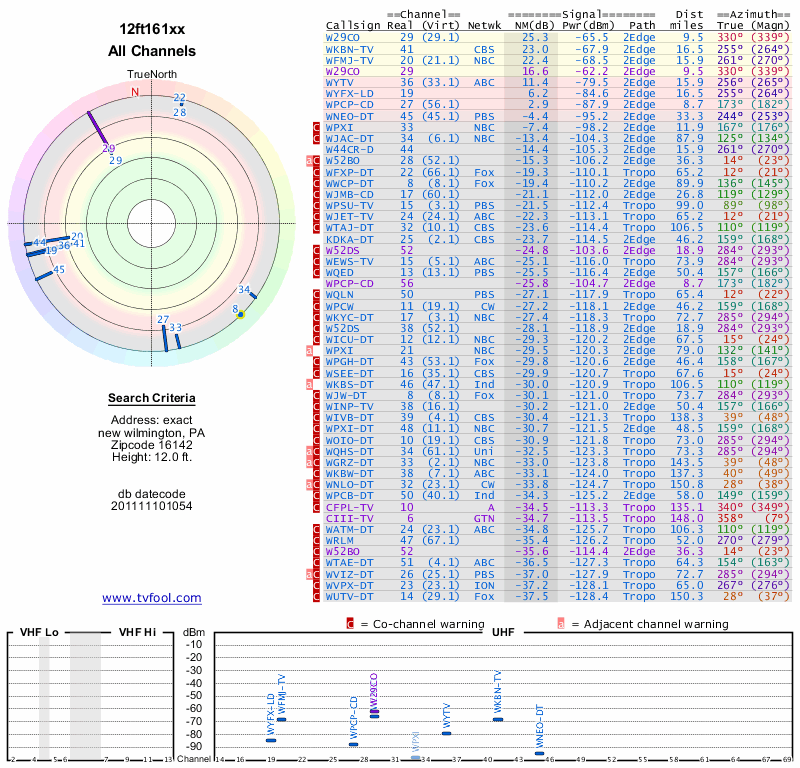 Here are the results for your location. The transmitter database was last updated on June 7, 2013. For more information about these plots and how to interpret them, please check out the Signal Analysis FAQ.